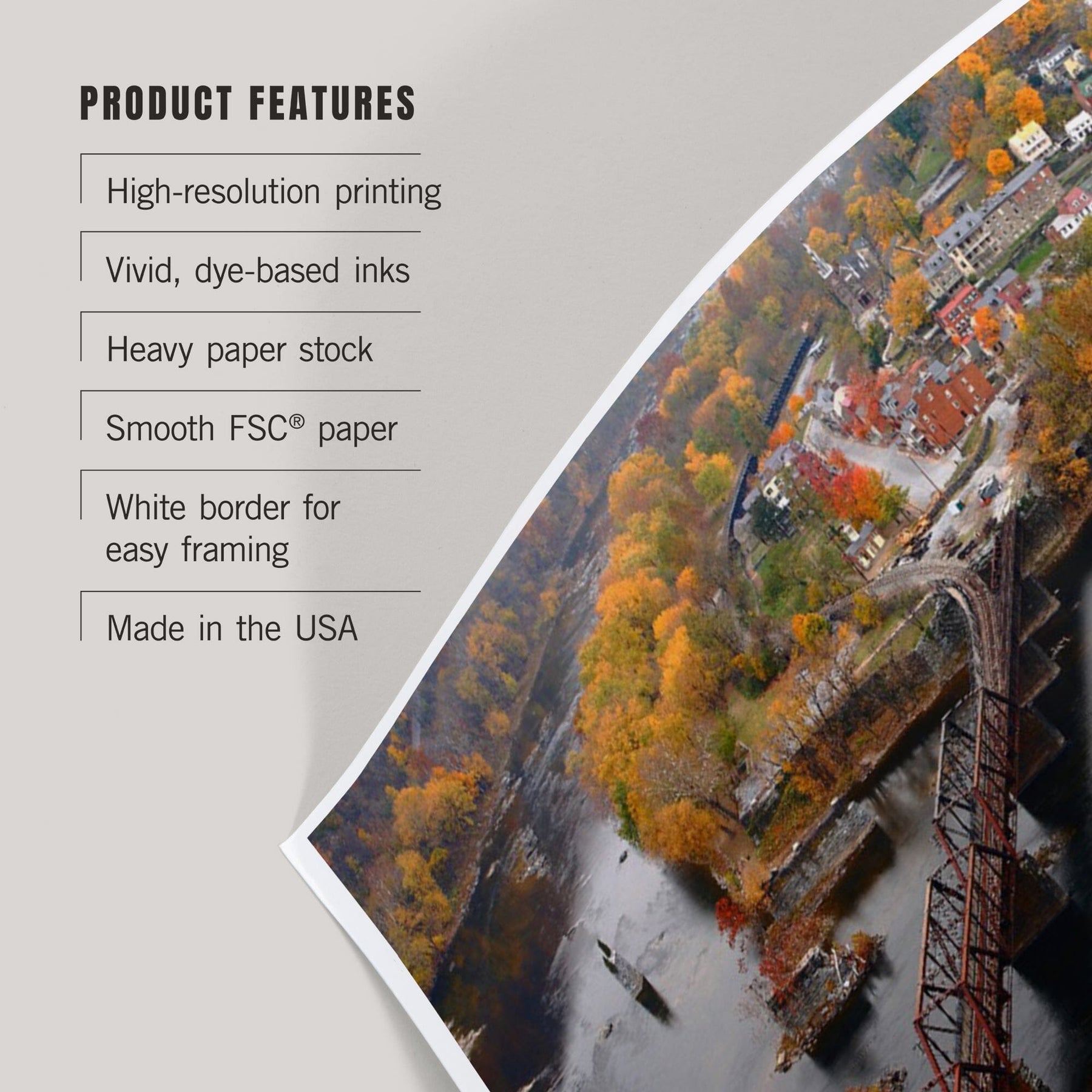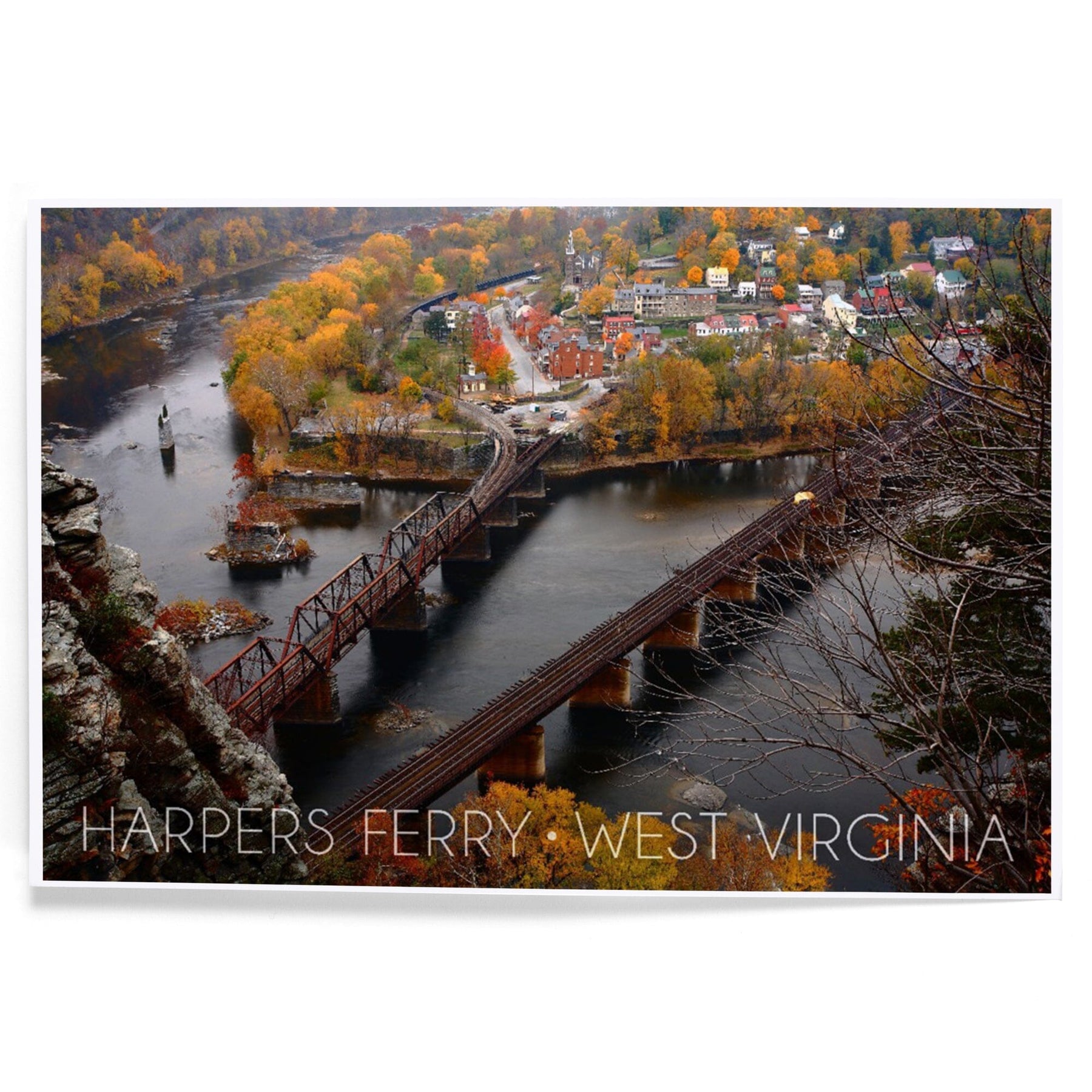 Harpers Ferry, West Virginia, Bird's Eye View, Lantern Press Photography, Wood Signs and Postcards