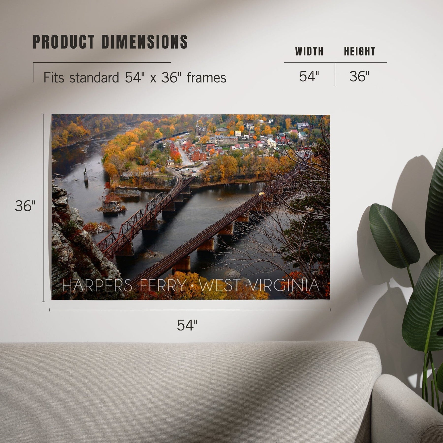 Harpers Ferry, West Virginia, Bird's Eye View, Lantern Press Photography, Wood Signs and Postcards - Lantern Press