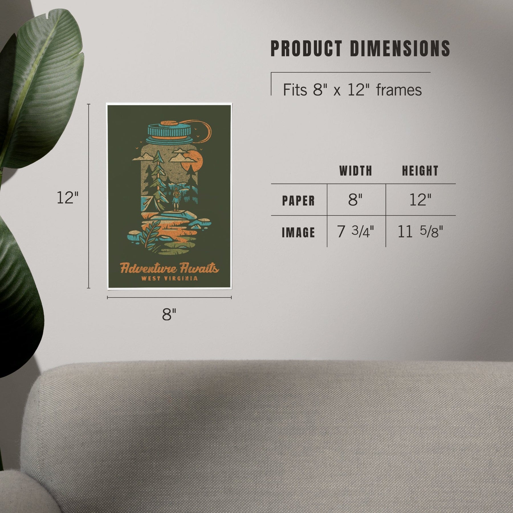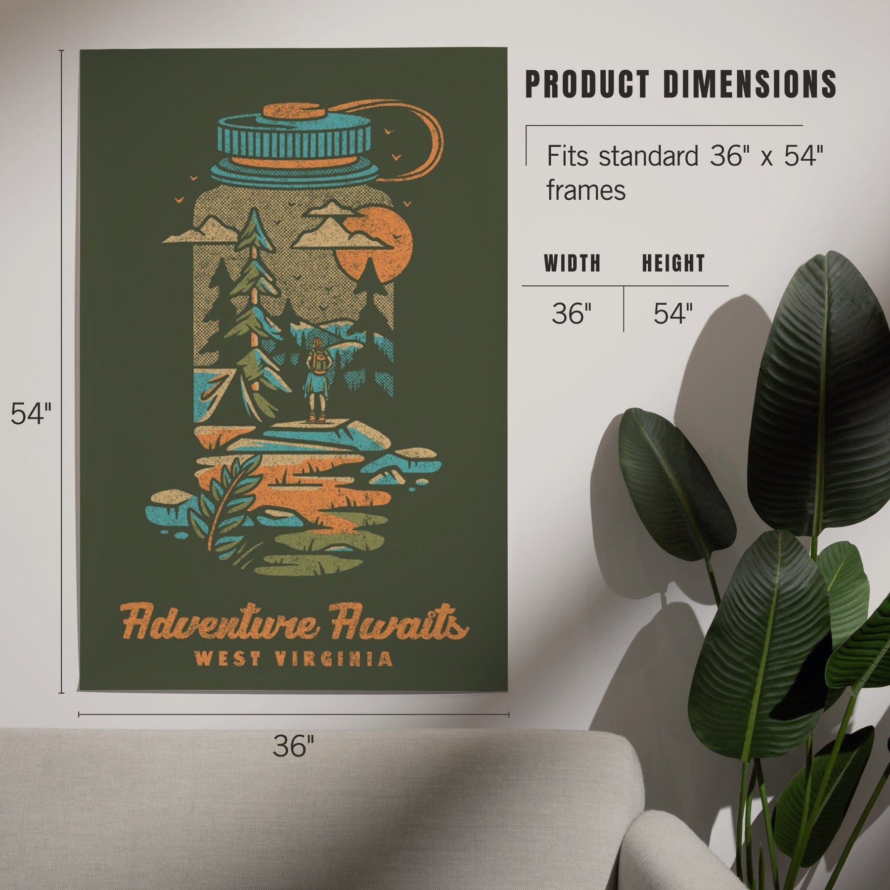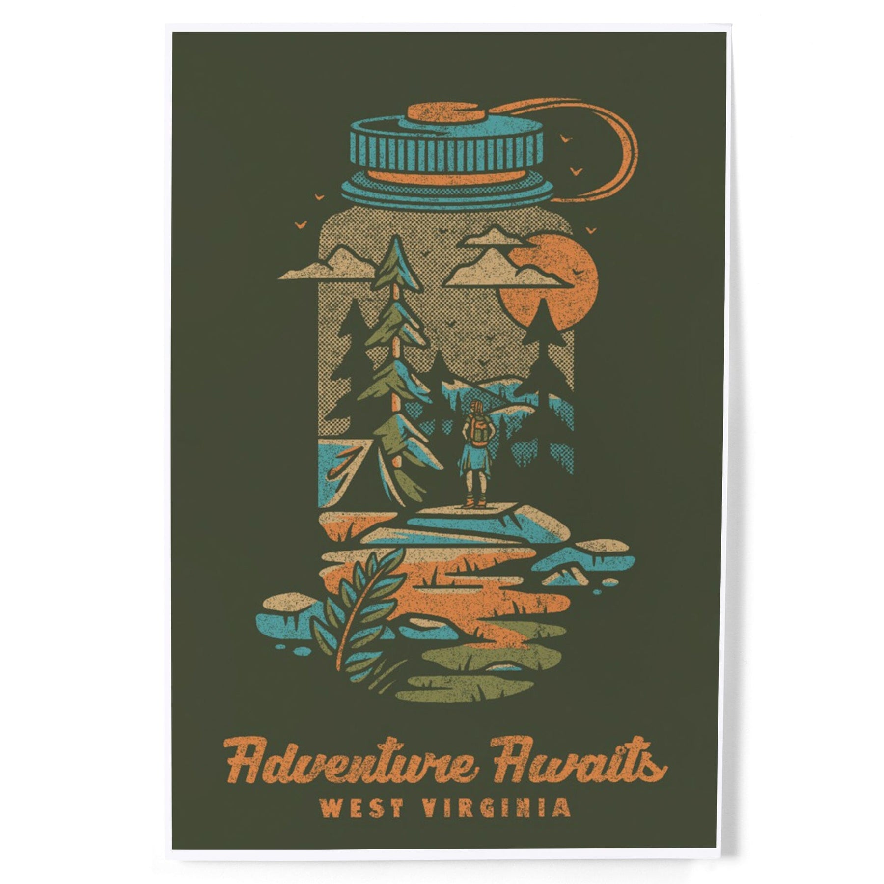West Virginia, Adventure Awaits, Water Bottle, Lantern Press Artwork, Art & Giclee Prints Art Lantern Press