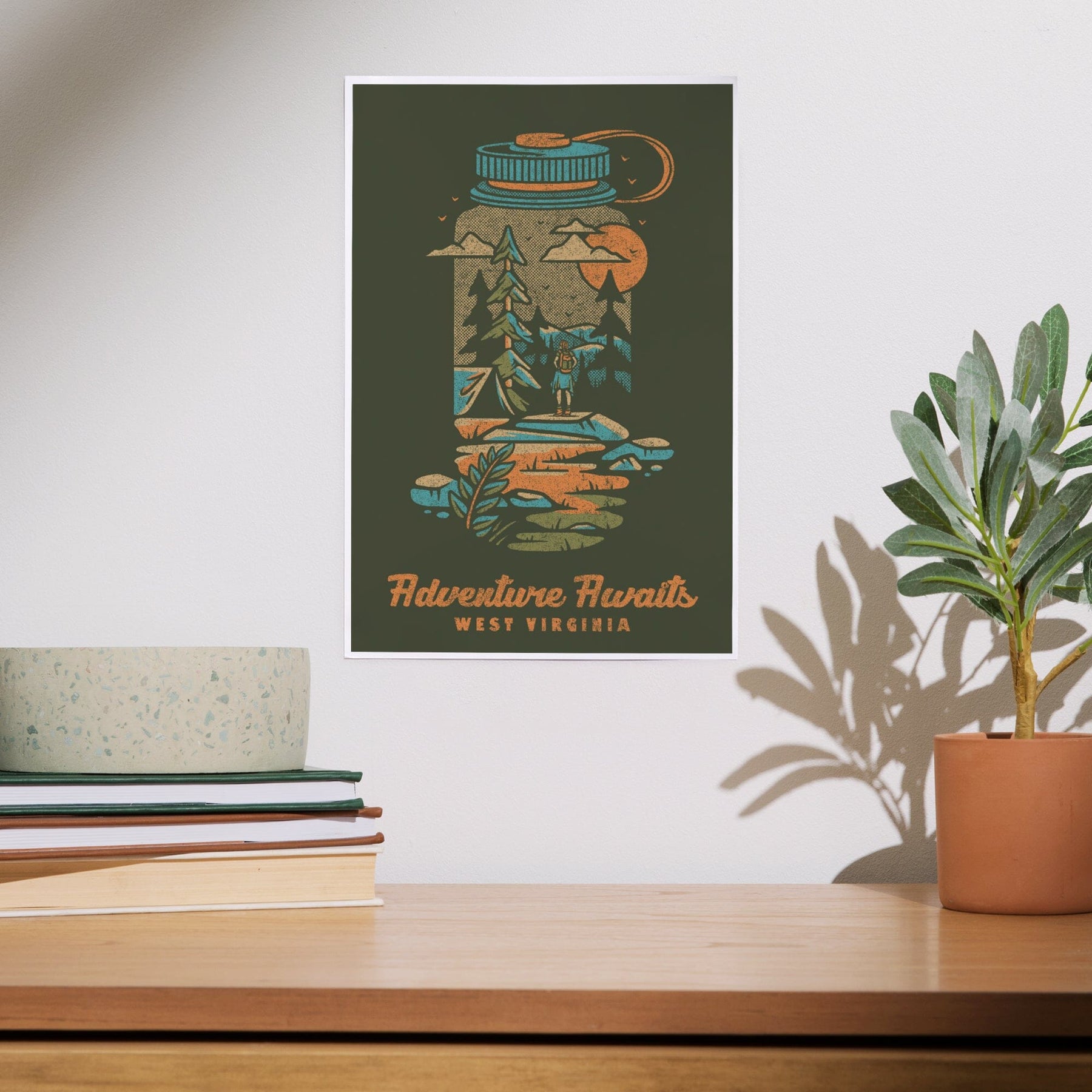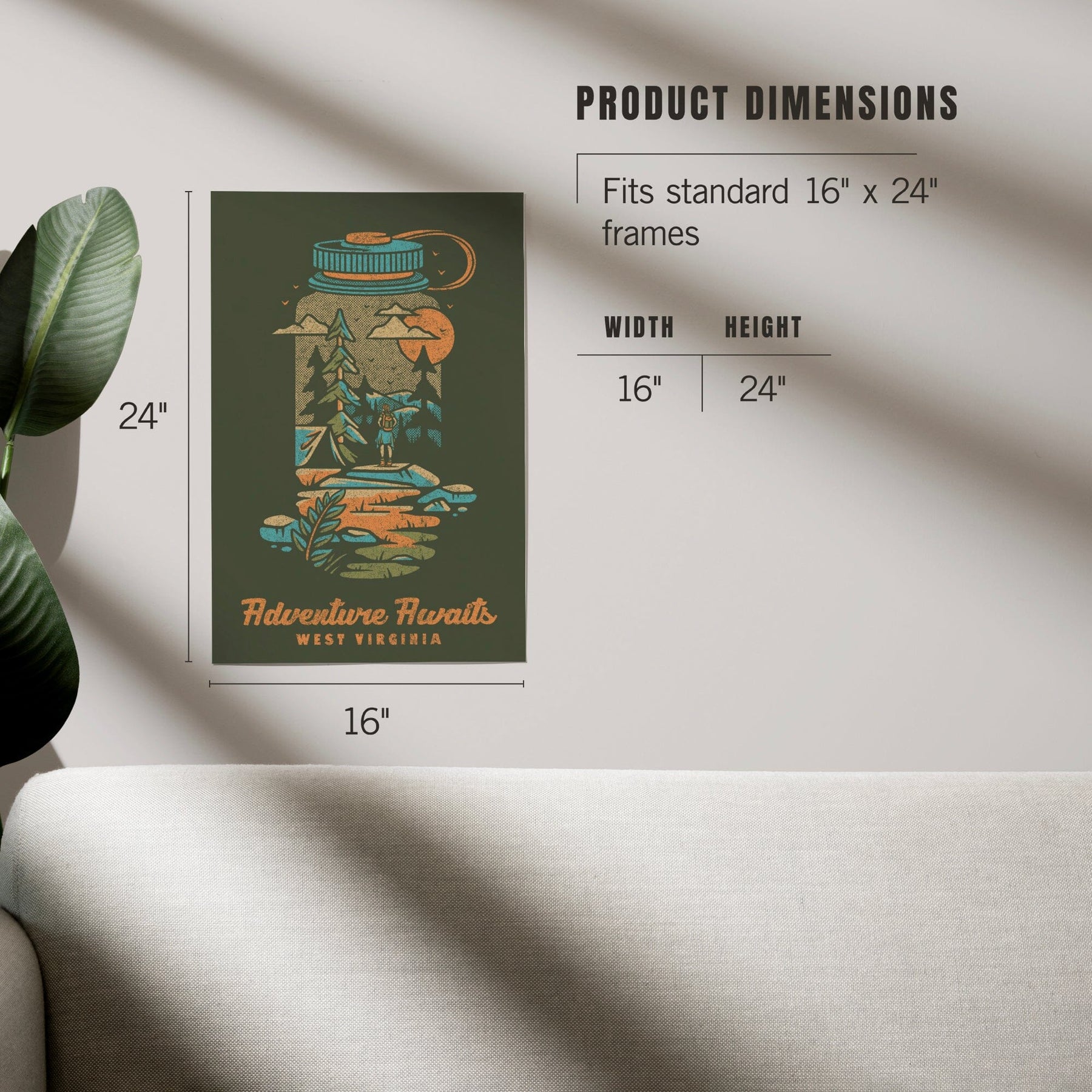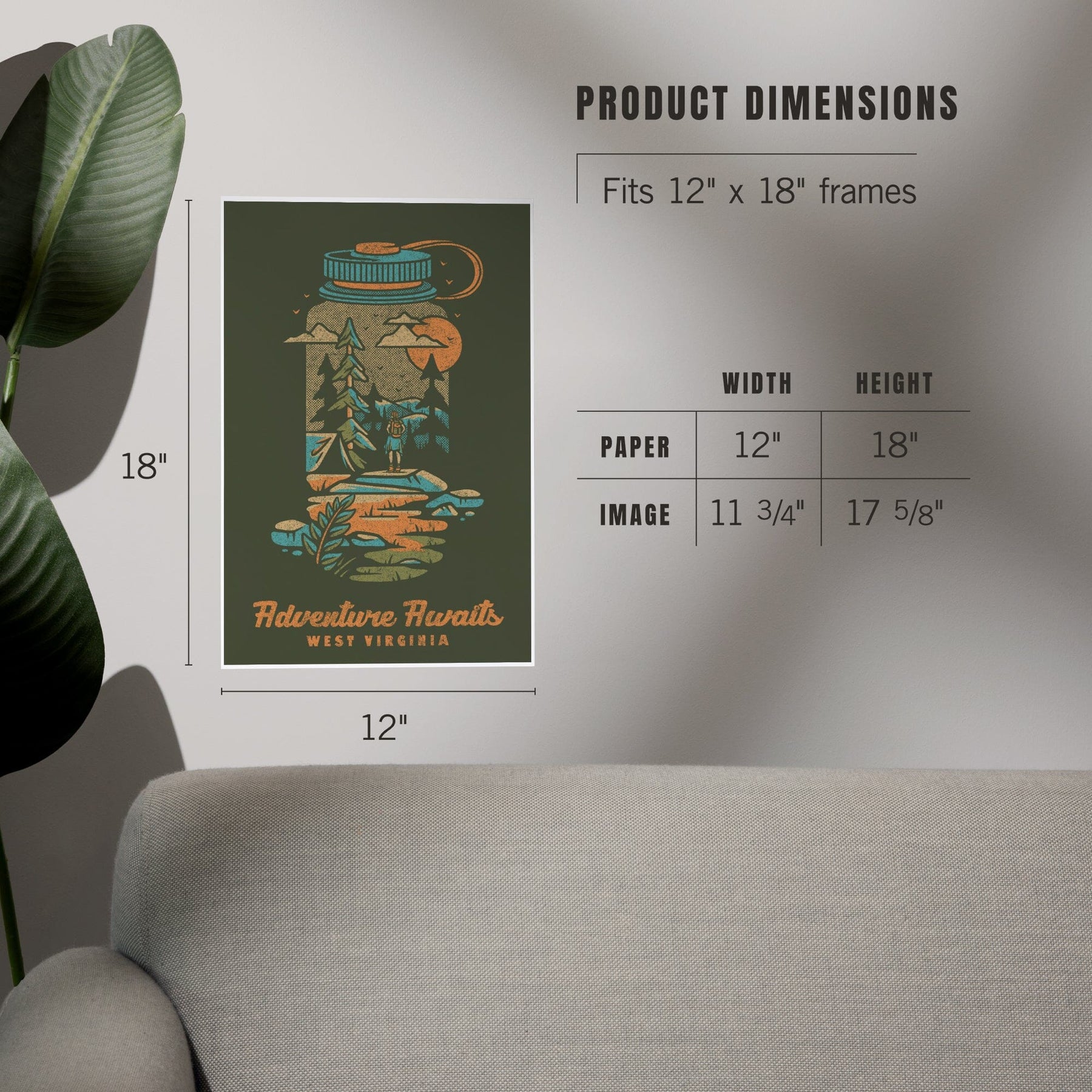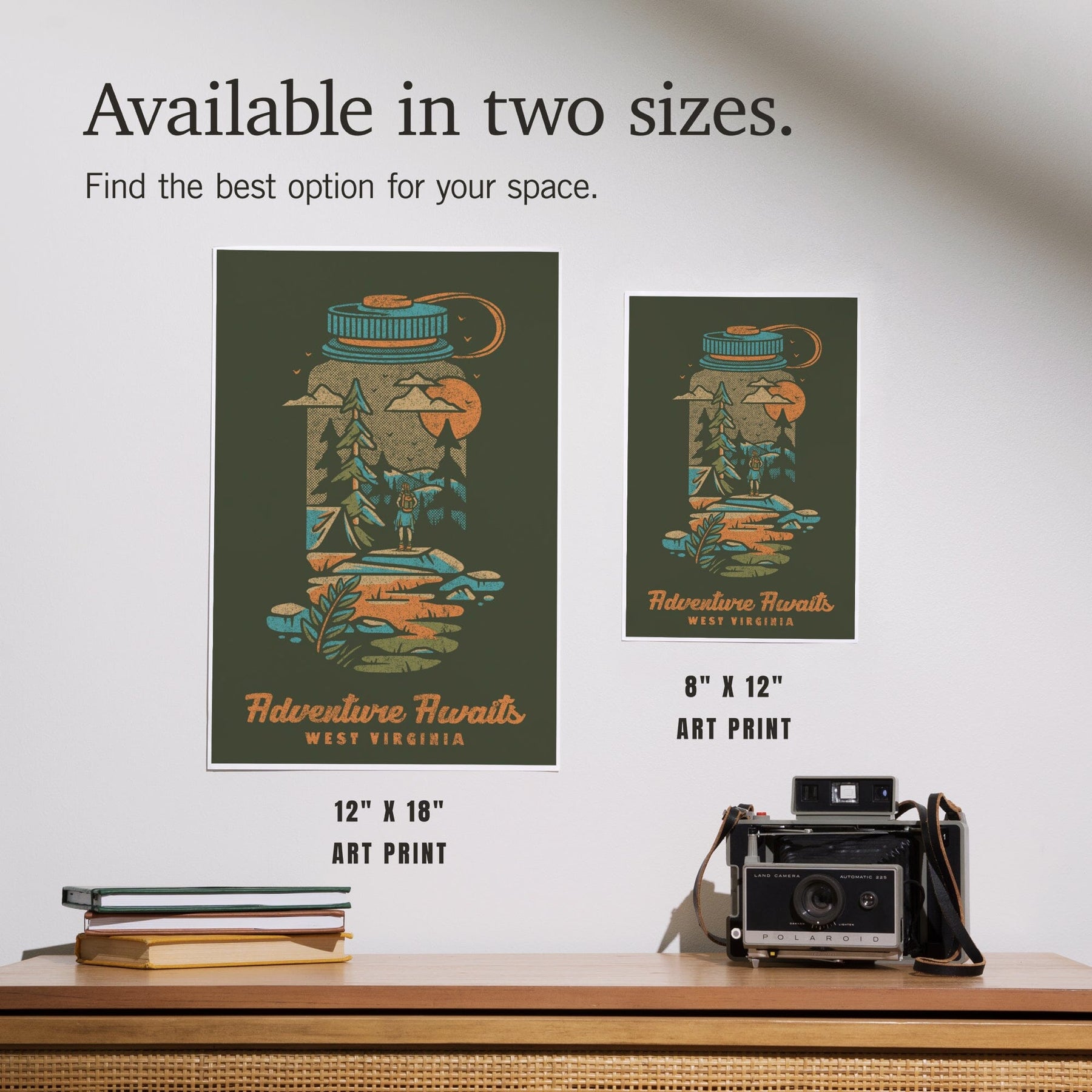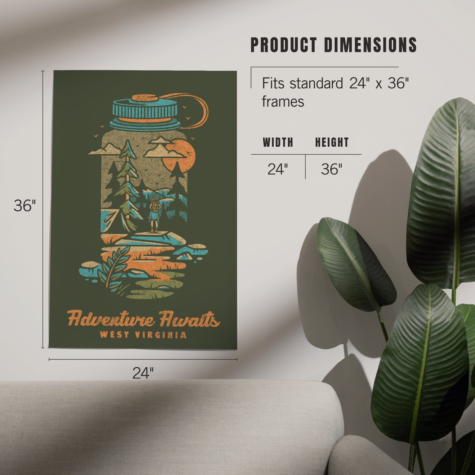 West Virginia, Adventure Awaits, Water Bottle, Lantern Press Artwork, Art & Giclee Prints
