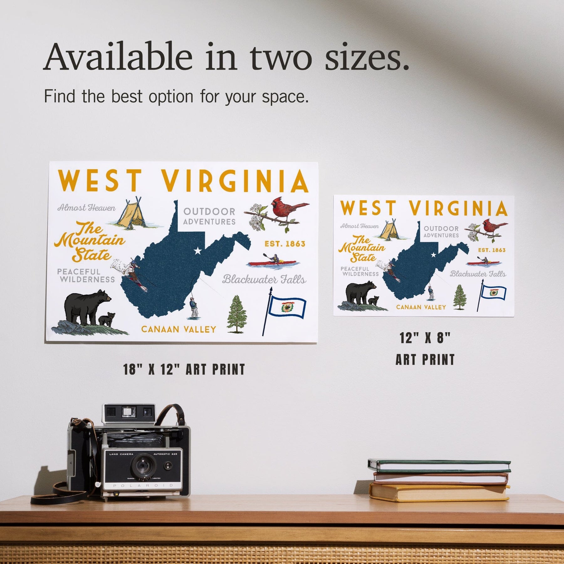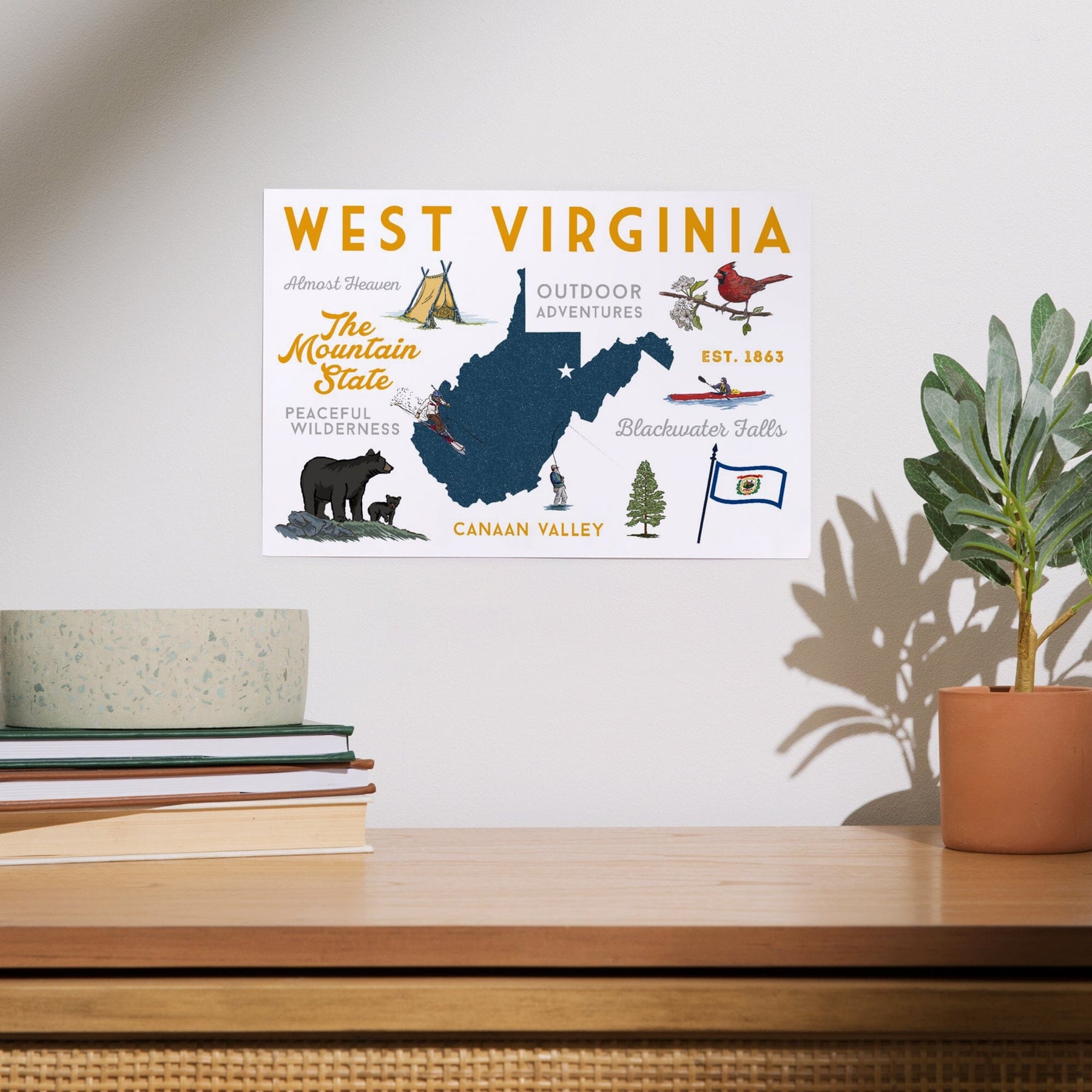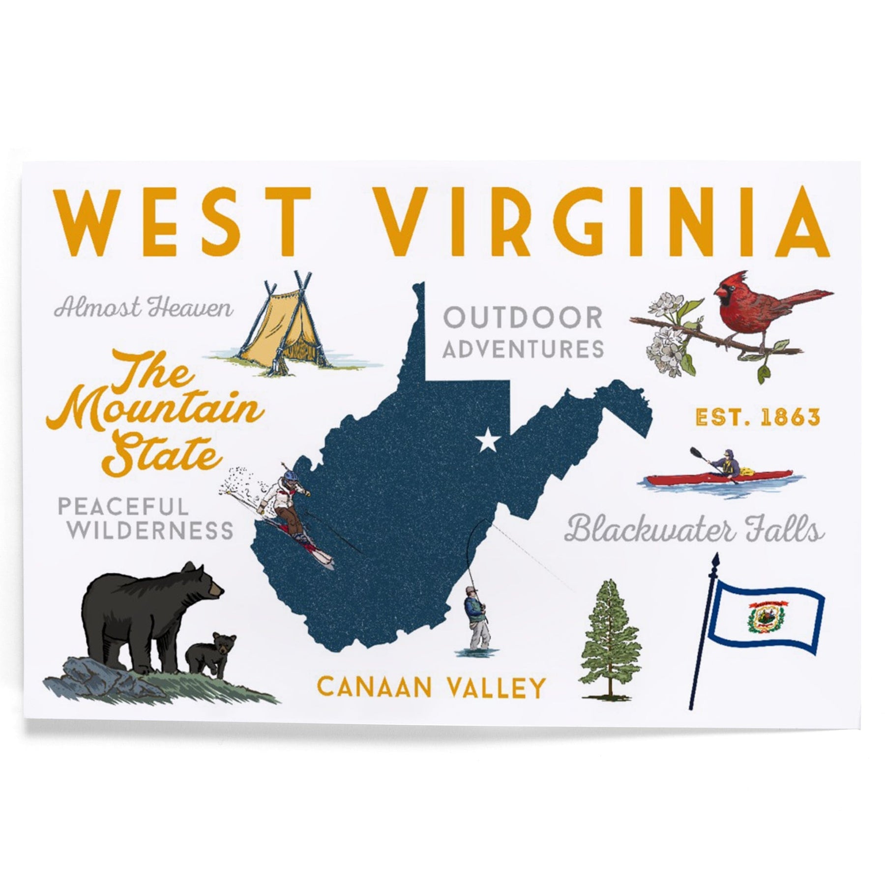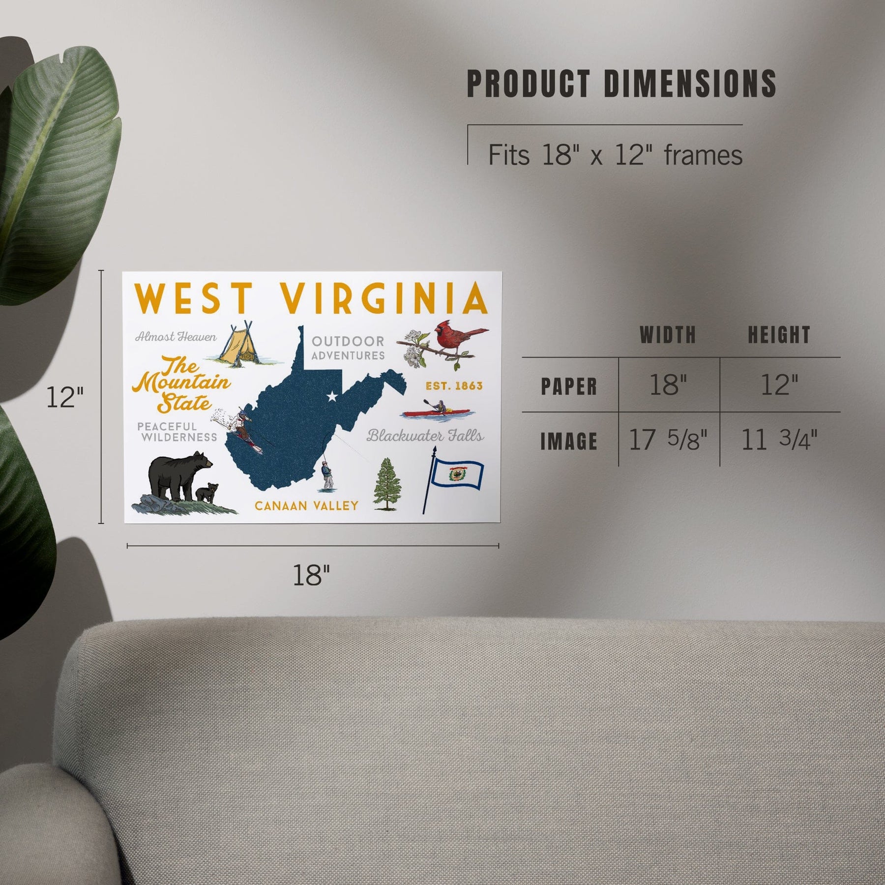 West Virginia, The Mountain State, Typography and Icons, Art & Giclee Prints Art Lantern Press