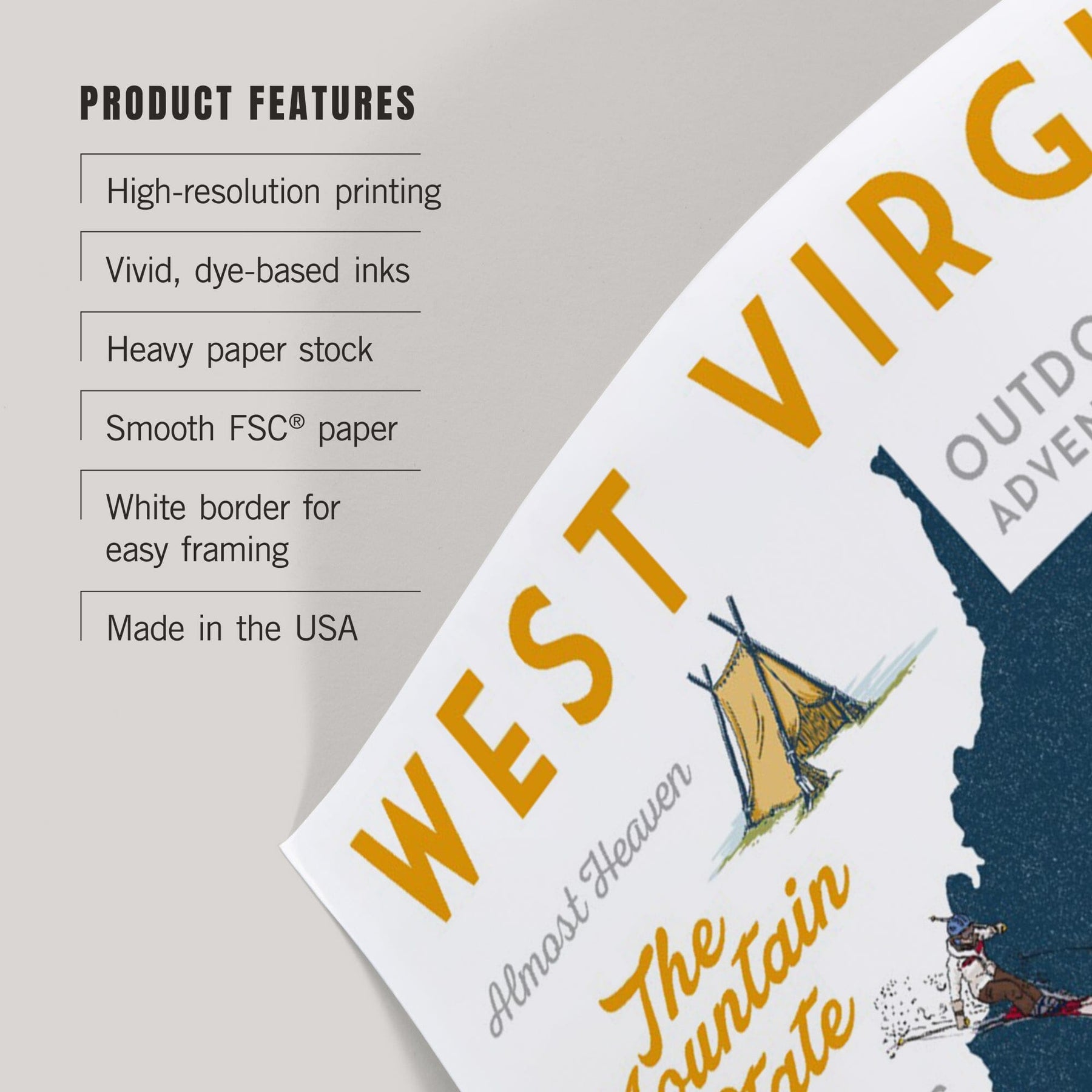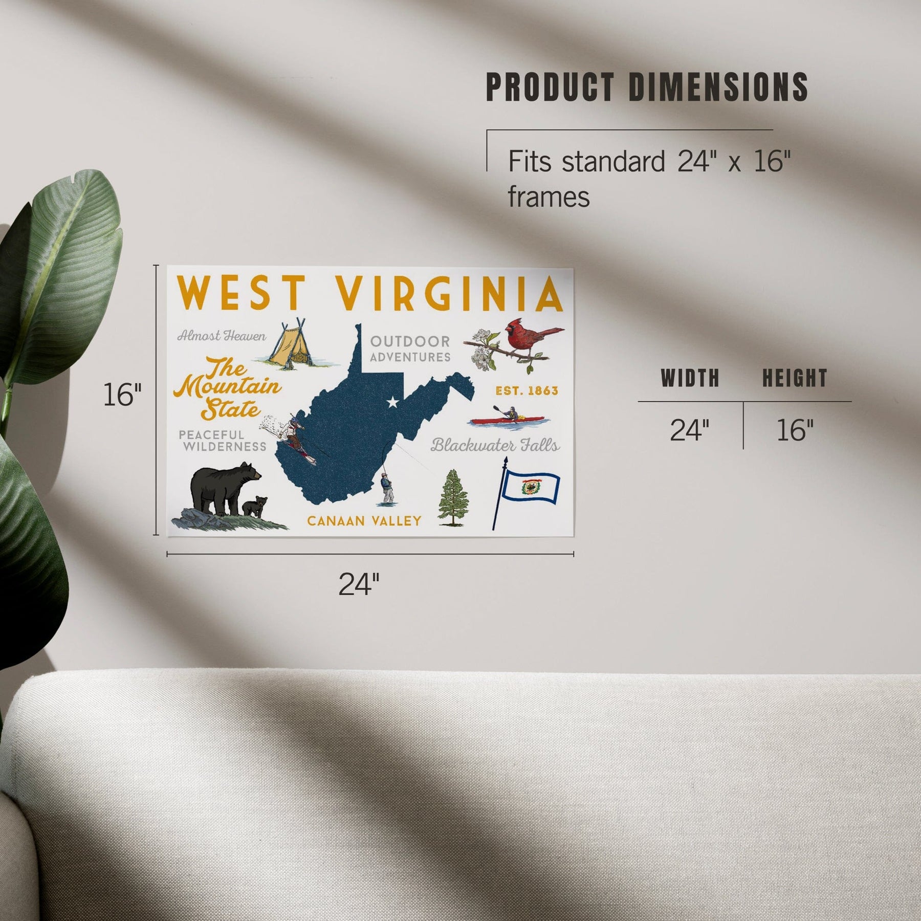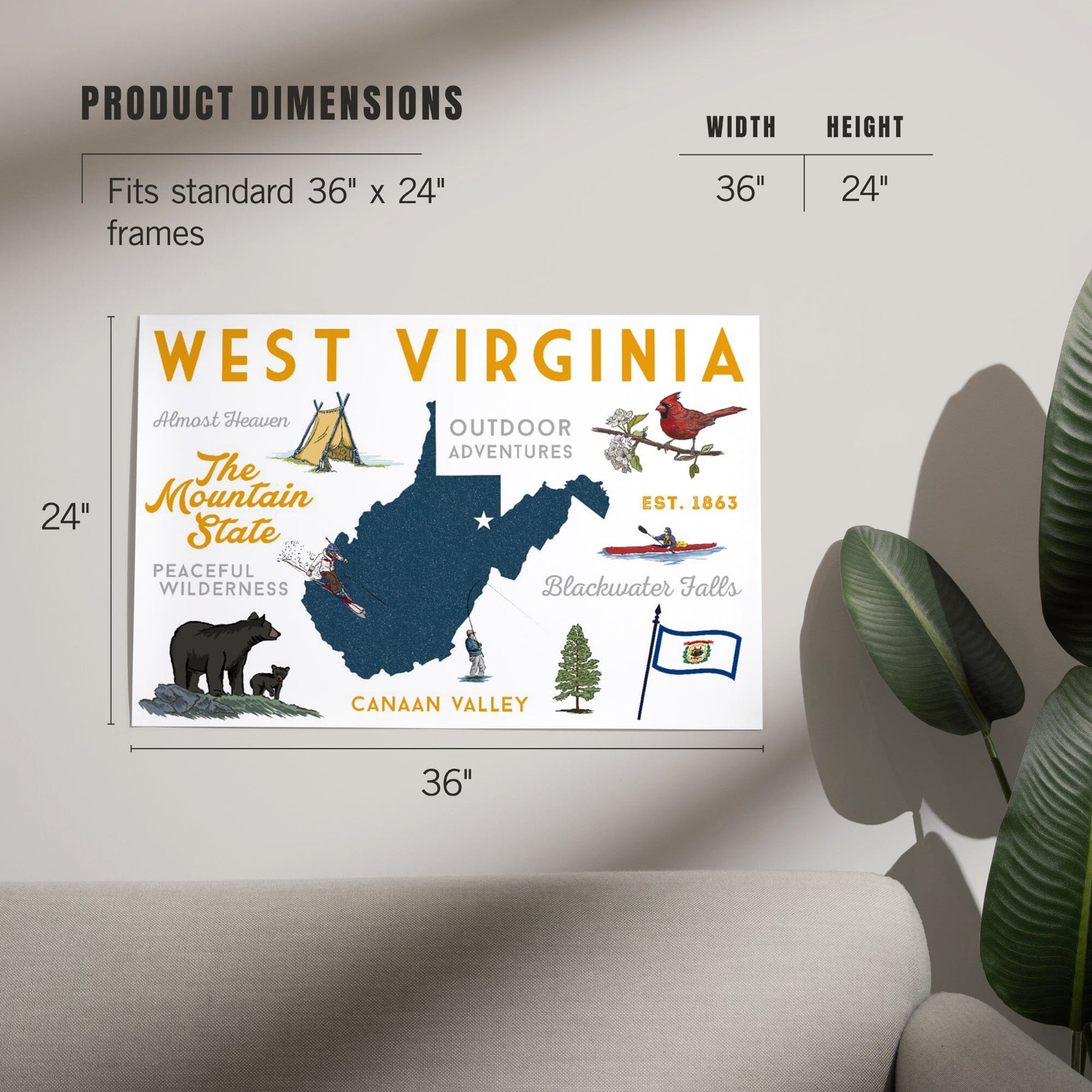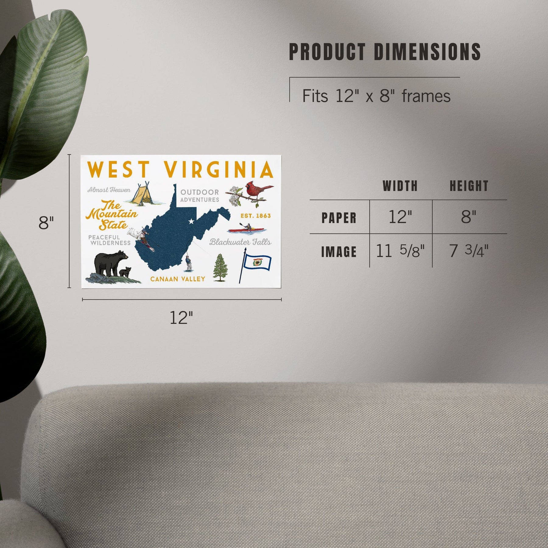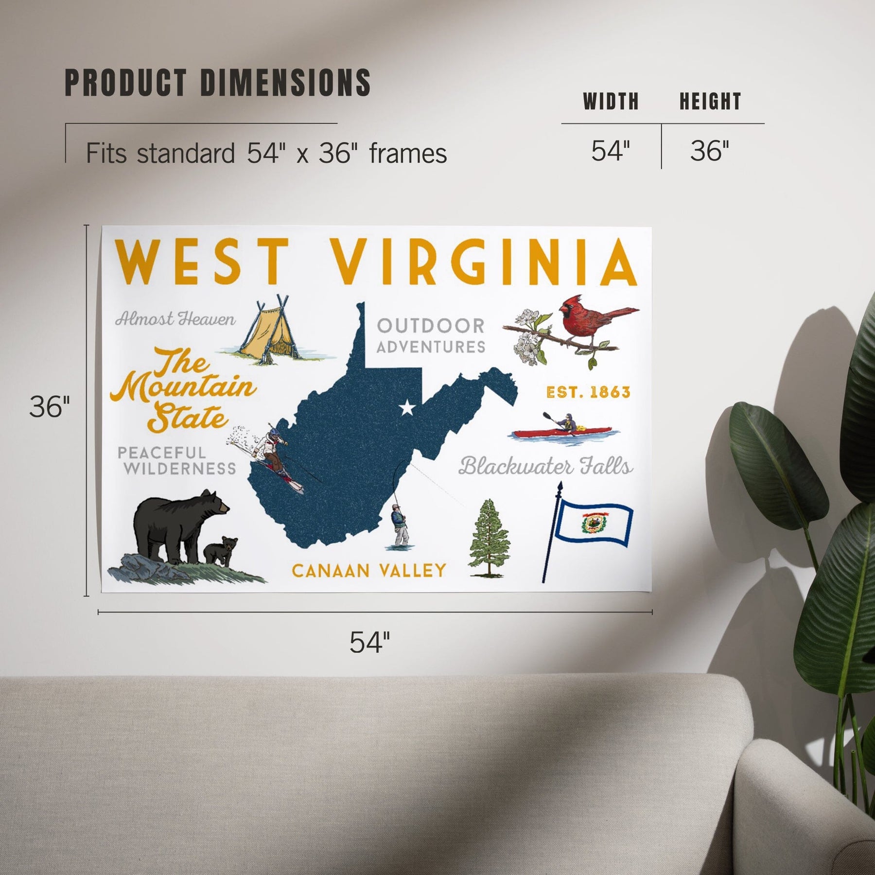 West Virginia, The Mountain State, Typography and Icons, Art & Giclee Prints Art Lantern Press