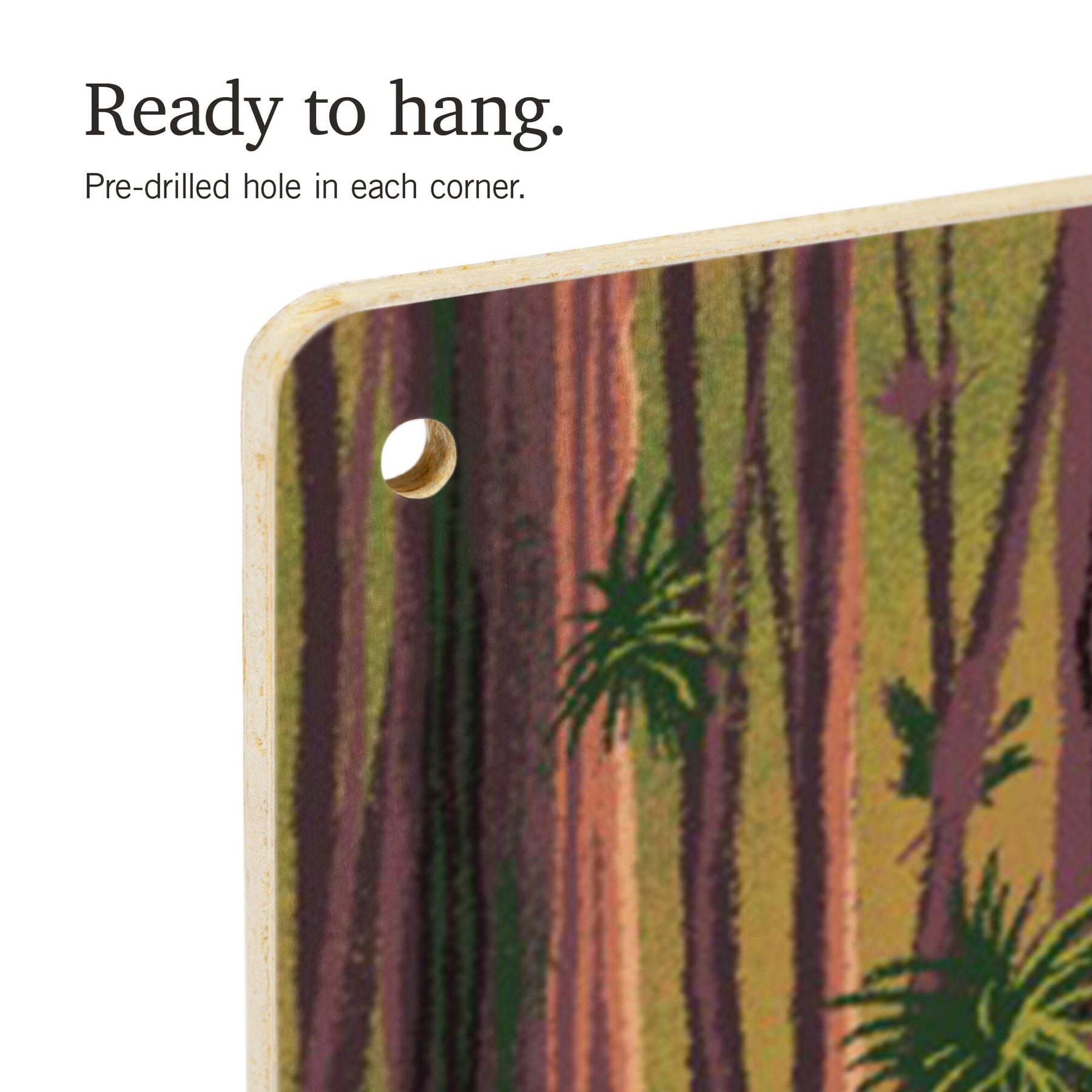 • Hole in each corner, ready to hang