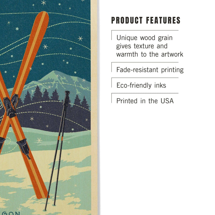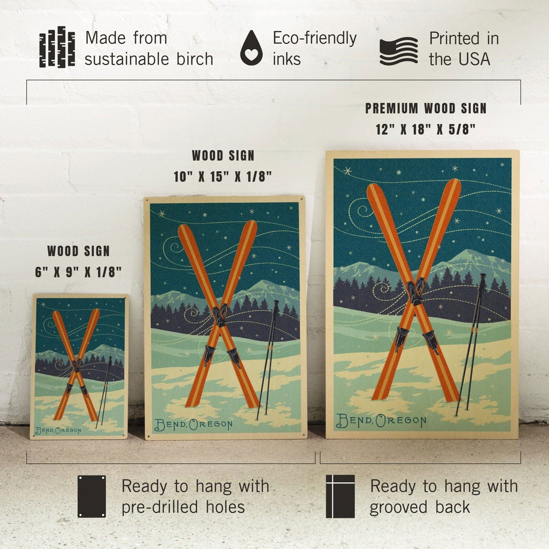 Bend, Oregon, Crossed Skis, Letterpress, Lantern Press Artwork, Wood Signs and Postcards