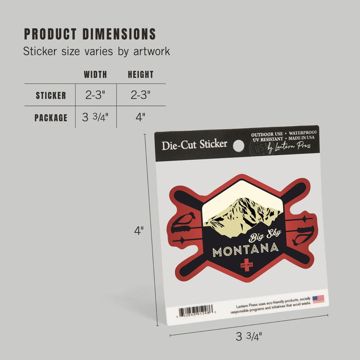 Big Sky, Montana, Est. 1973, Ski Patrol, Contour, Vinyl Sticker - Lantern Press