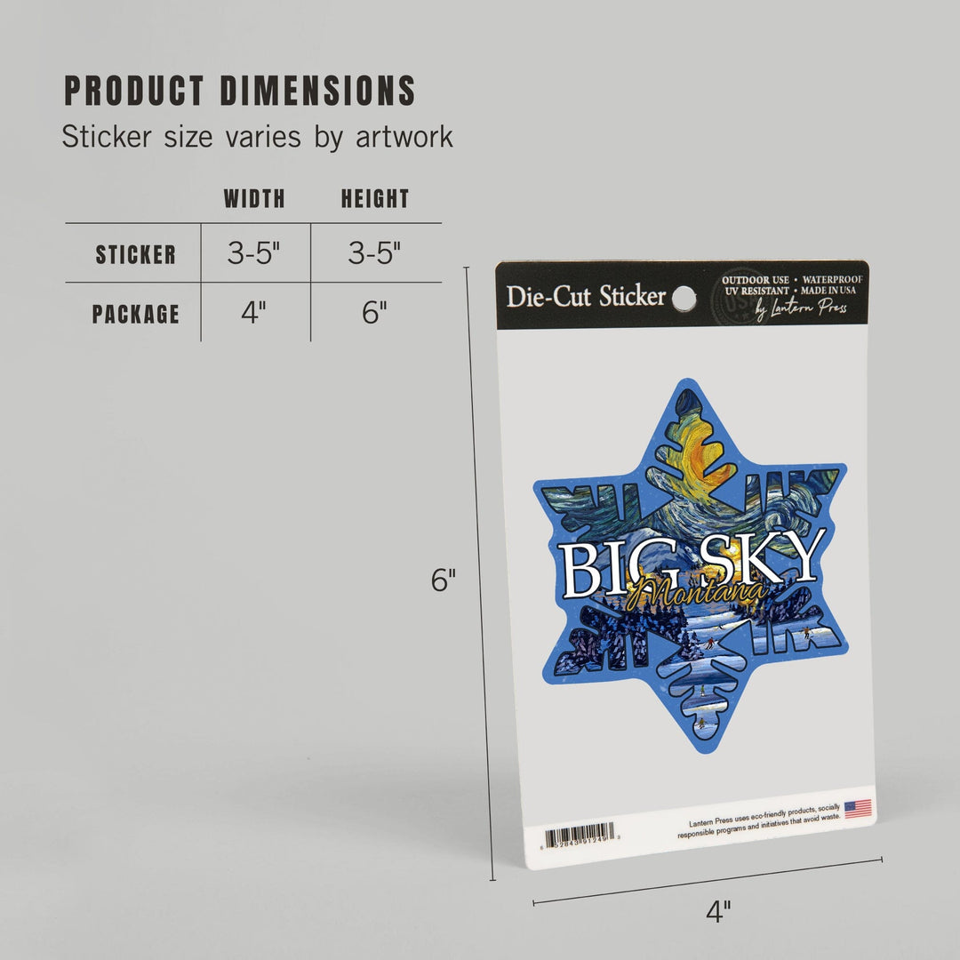 Big Sky, Montana, Starry Night, Snowflake, Contour, Vinyl Sticker