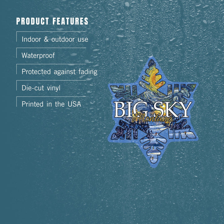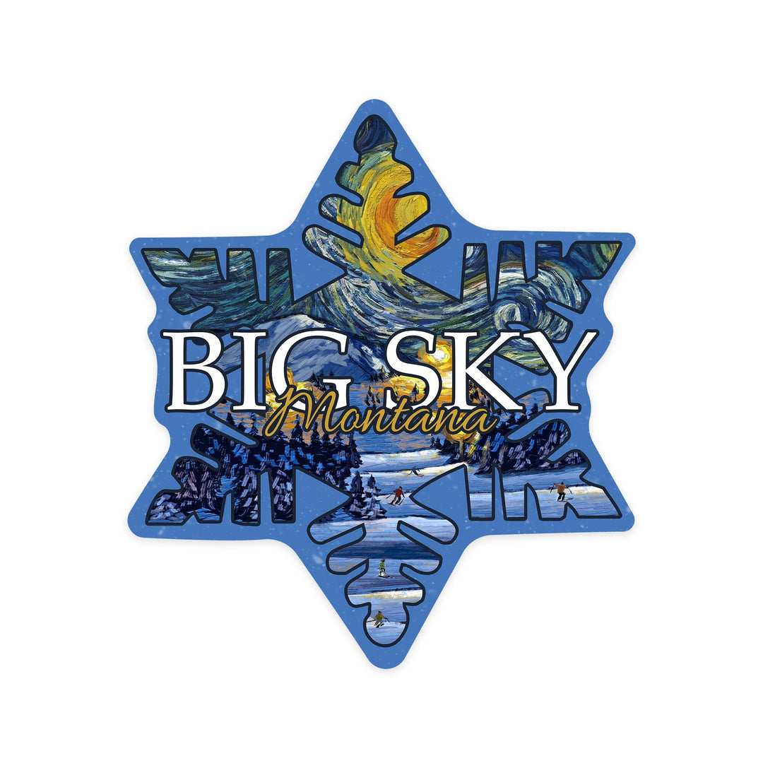 Big Sky, Montana, Starry Night, Snowflake, Contour, Vinyl Sticker - Lantern Press