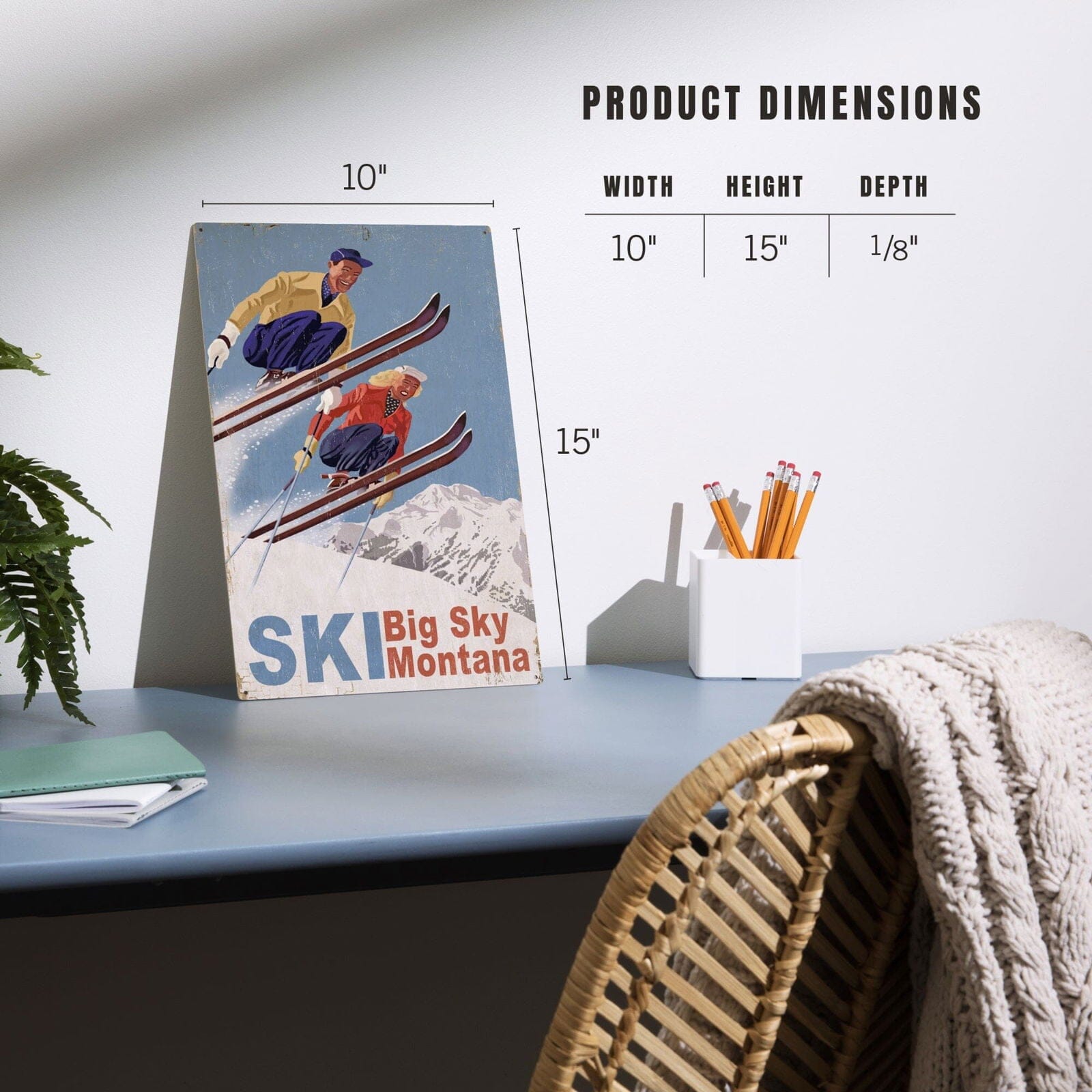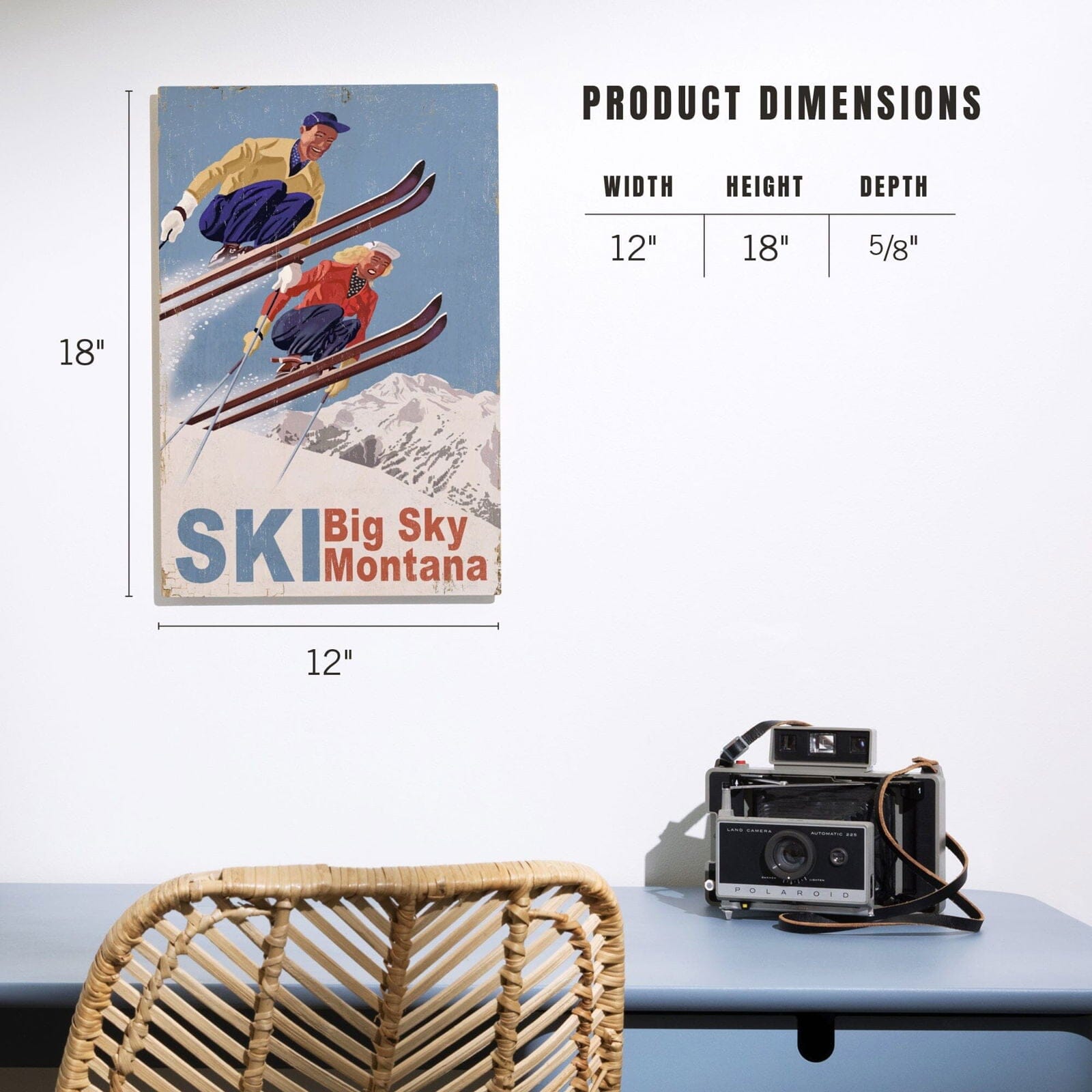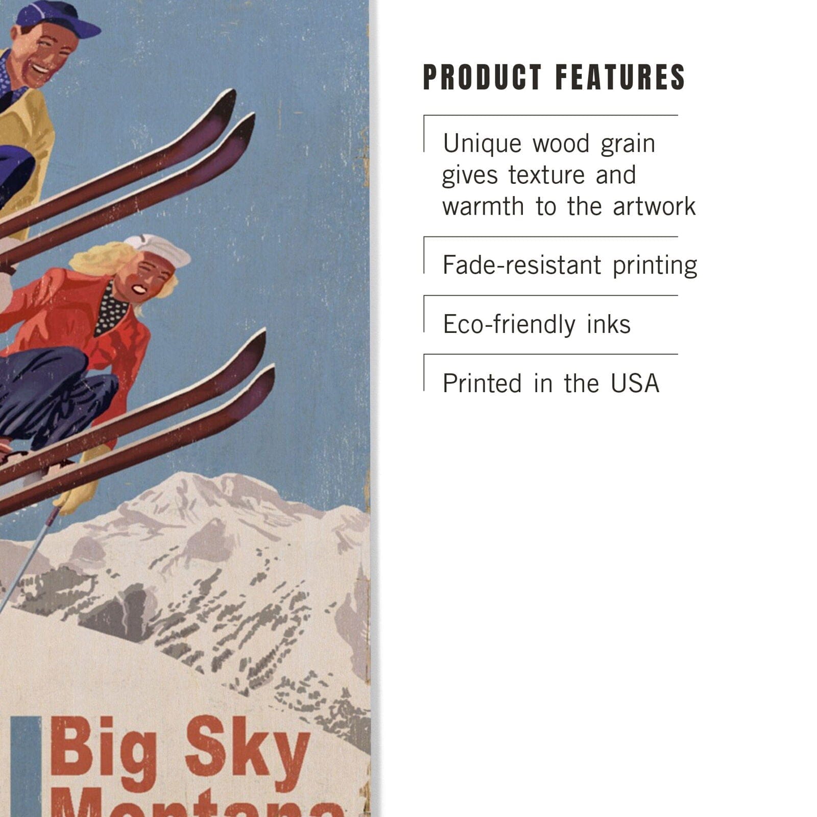 Big Sky Montana, Vintage Skiers, Wood Signs and Postcards Wood Lantern Press