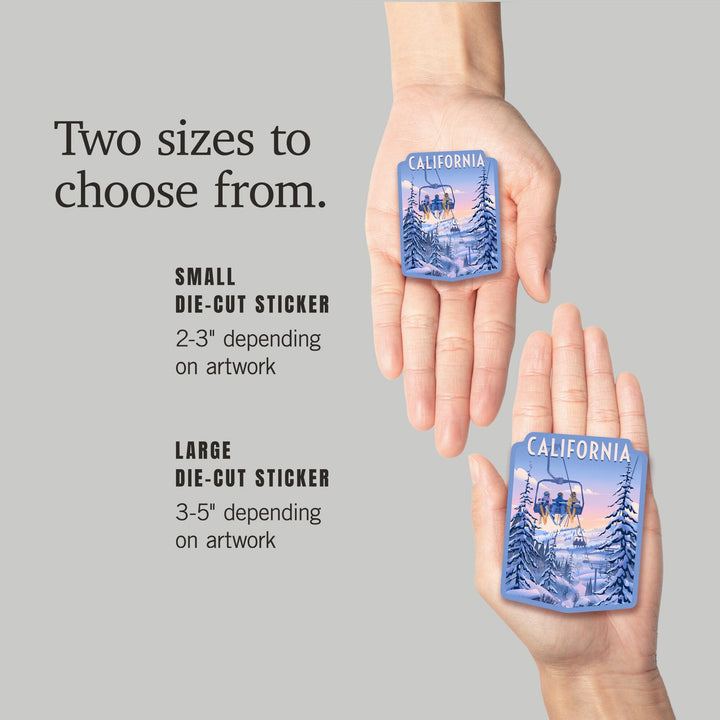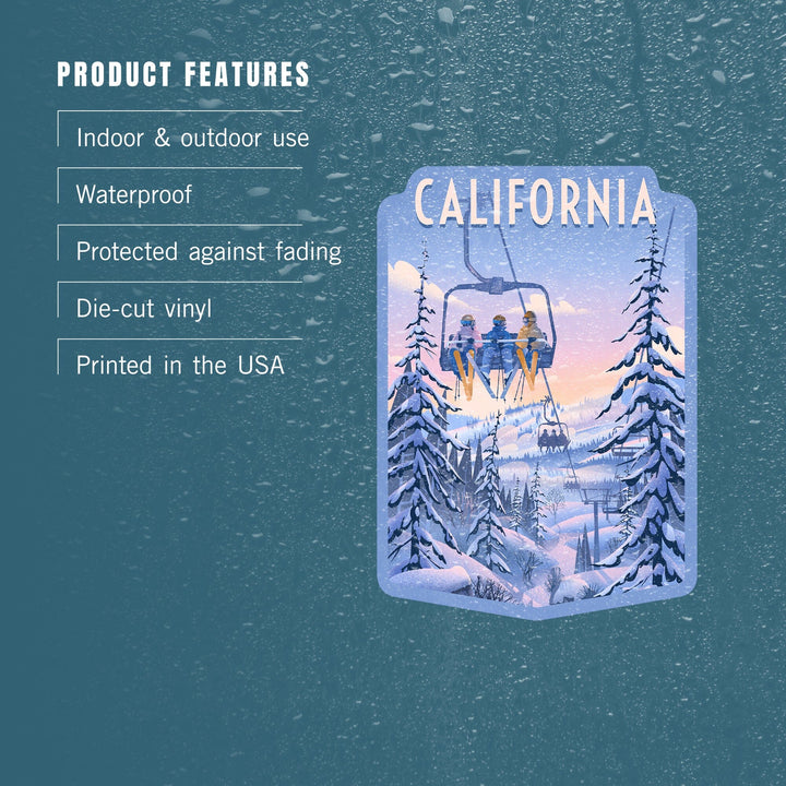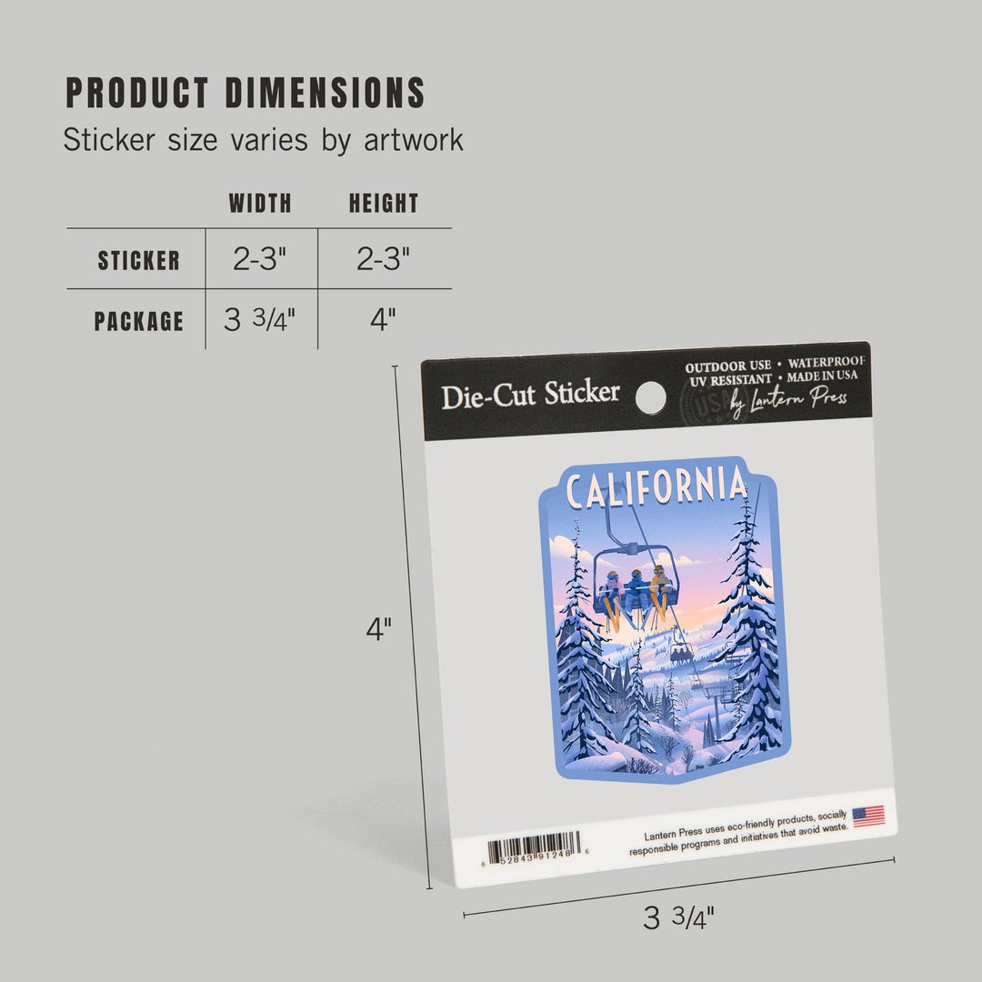 California, Chill on the Uphill, Ski Lift, Contour, Vinyl Sticker