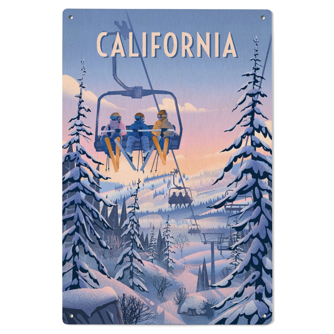 California, Chill on the Uphill, Ski Lift, Wood Signs and Postcards Wood Lantern Press