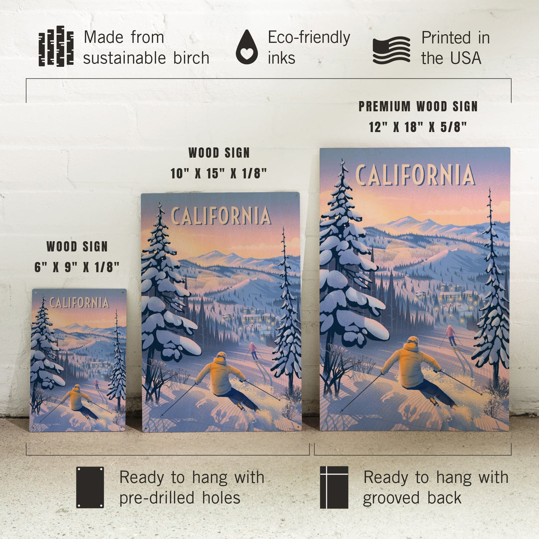 California, Ski for Miles, Skiing, Wood Signs and Postcards