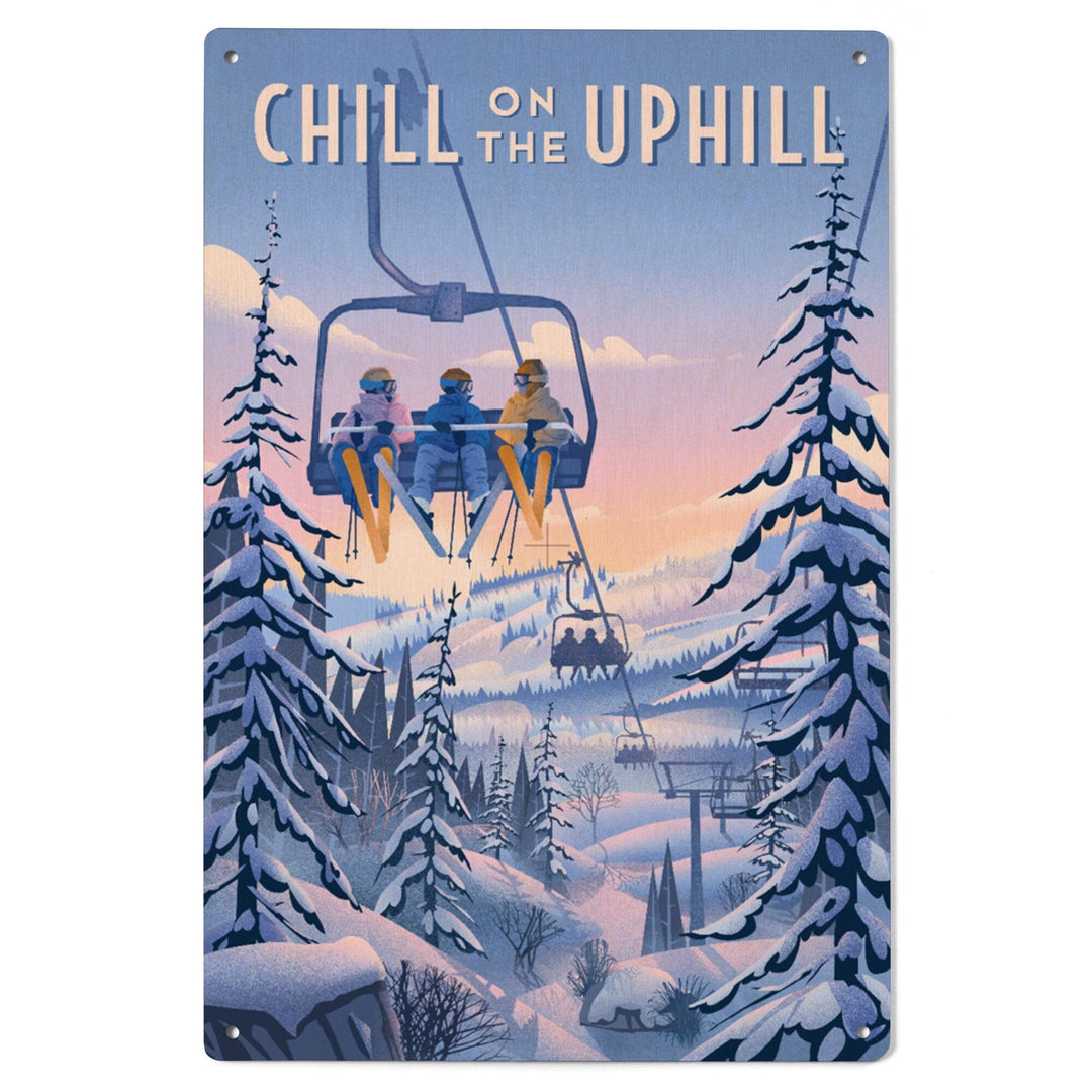 Chill on the Uphill, Ski Lift, Wood Signs and Postcards Wood Lantern Press