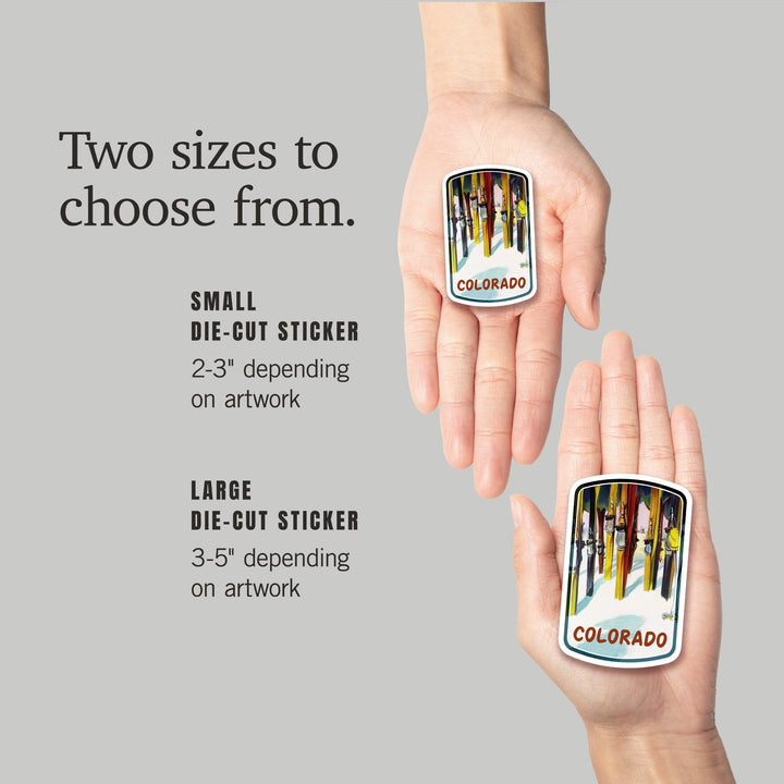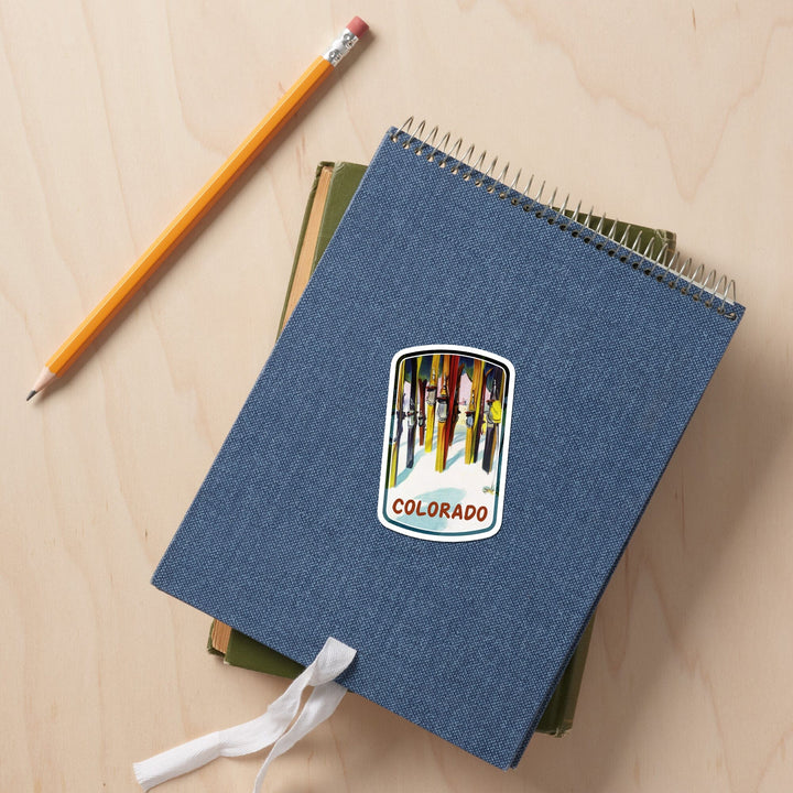 Colorado, Ski, Colorful Skis, Contour, Vinyl Sticker - Lantern Press