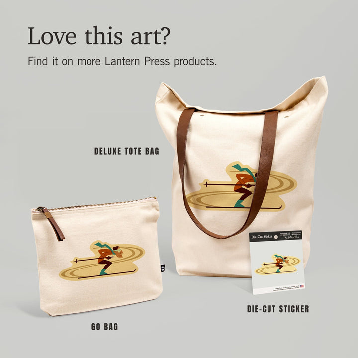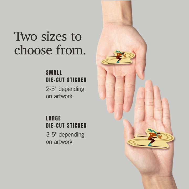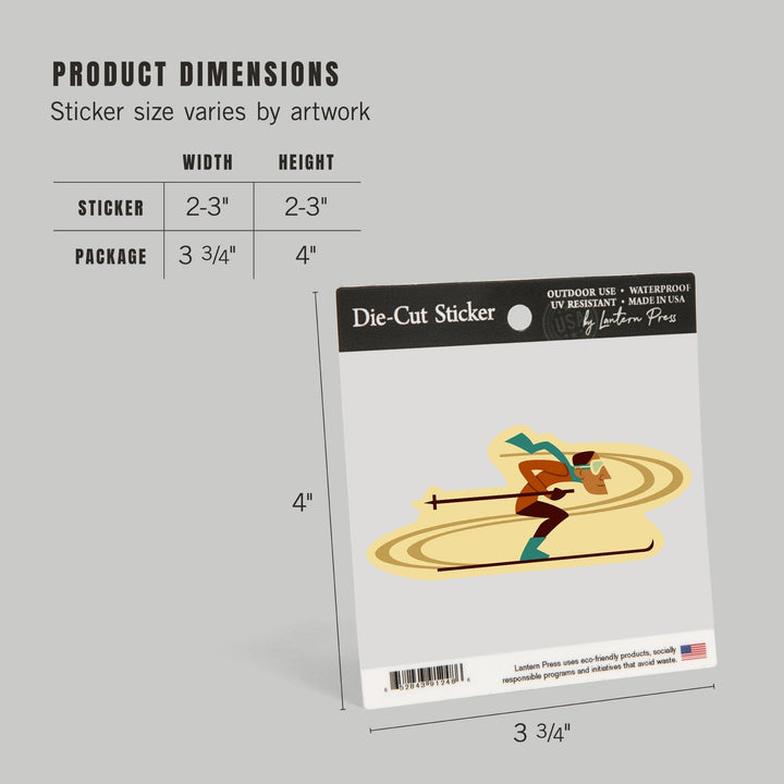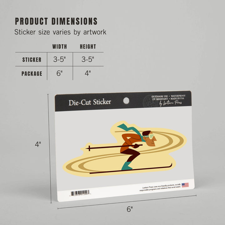 Skiing, Geometric, Contour, Lantern Press Artwork, Vinyl Sticker