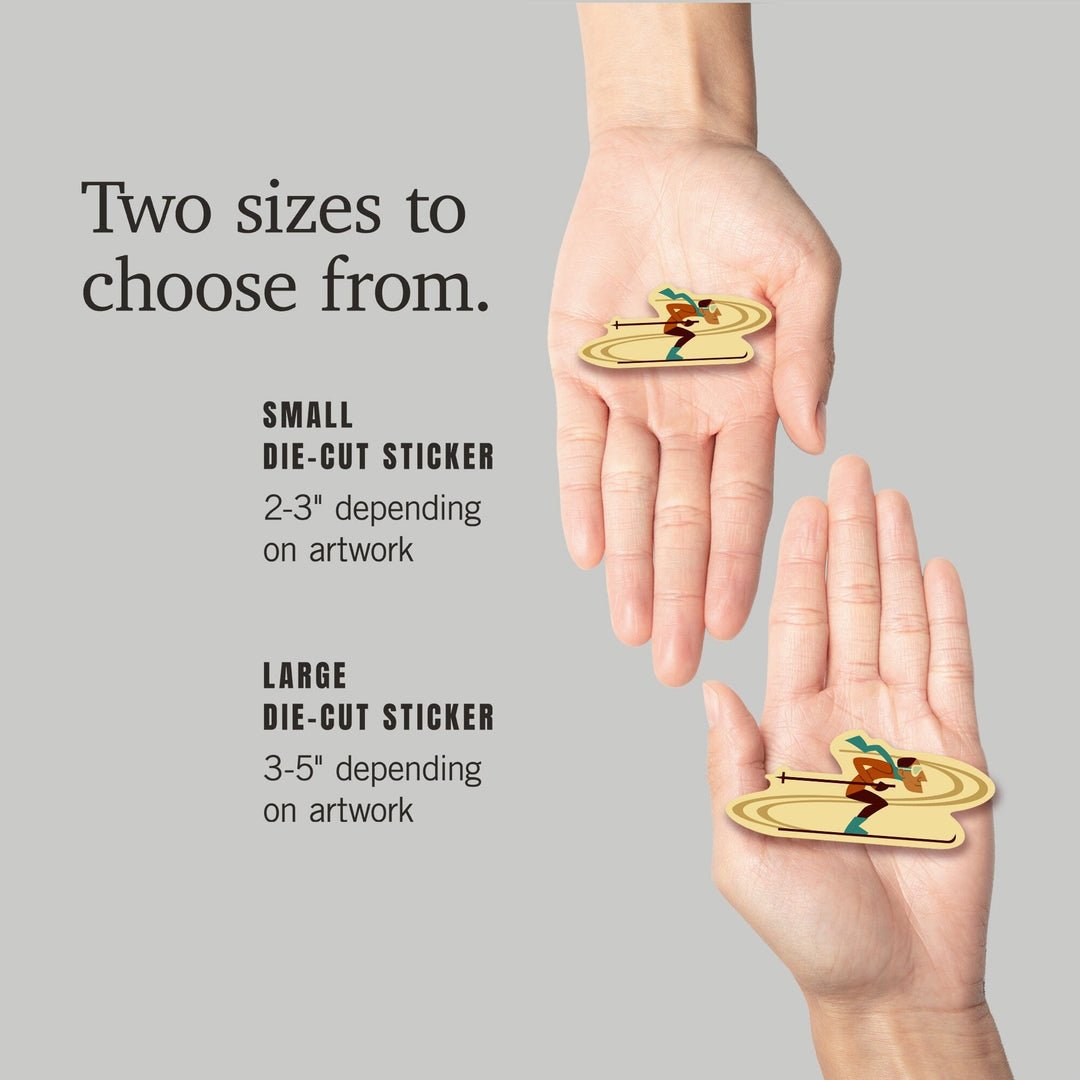 Skiing, Geometric, Contour, Lantern Press Artwork, Vinyl Sticker Sticker Lantern Press