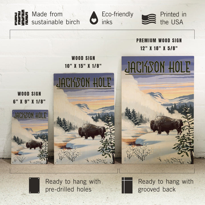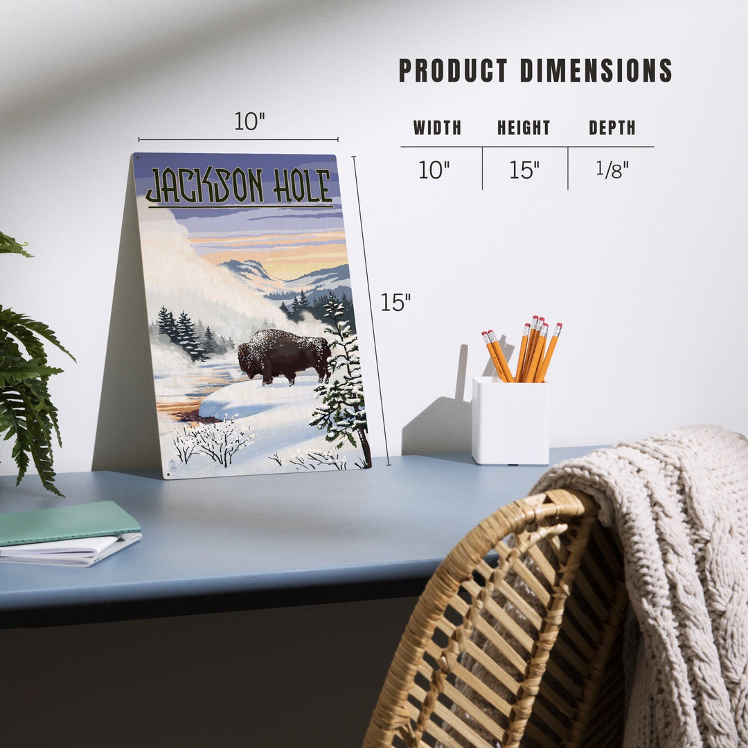 Jackson Hole, Wyoming, Bison Snow Scene, Lantern Press Artwork, Wood Signs and Postcards