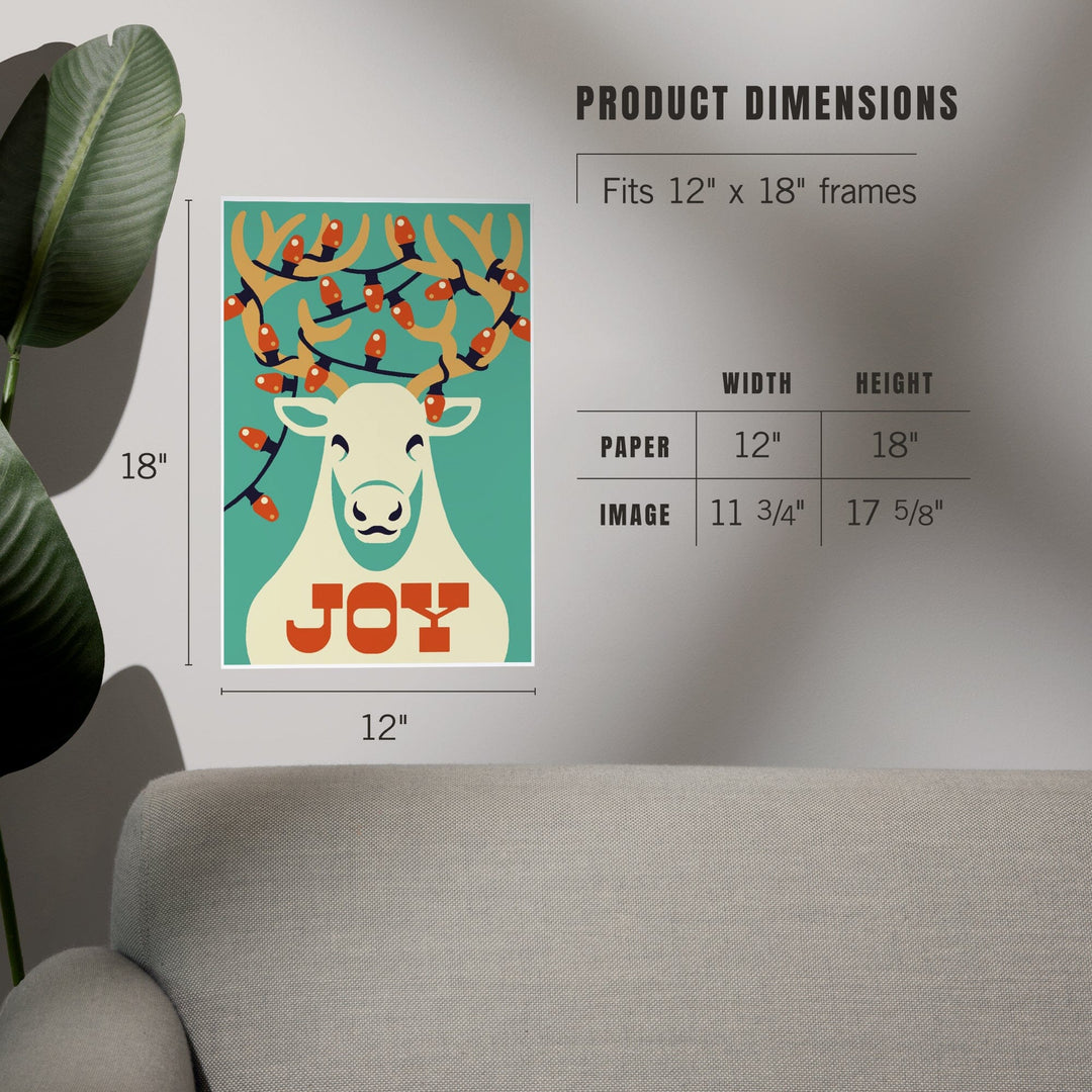 Joy, Reindeer, Retro Christmas, Art & Giclee Prints - Lantern Press
