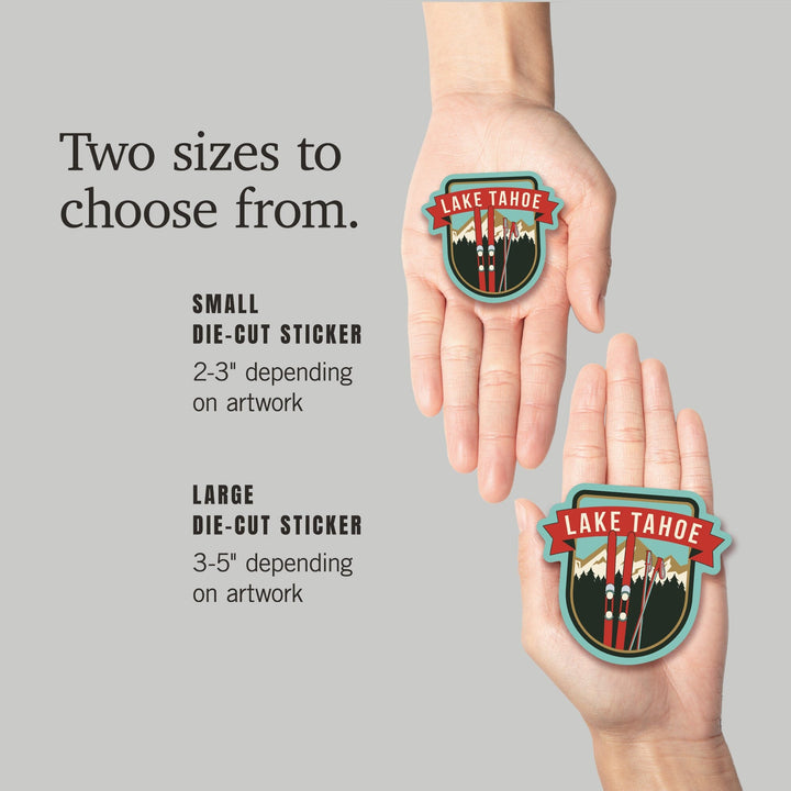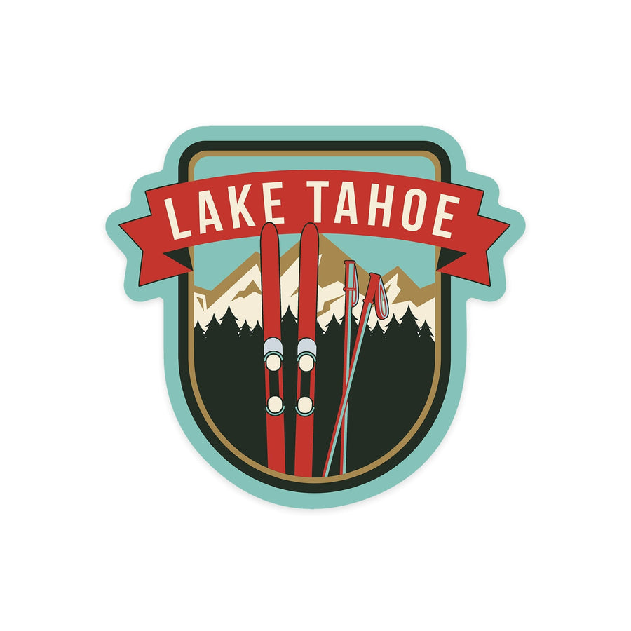 Lake Tahoe, California, Skis and Mountains, Contour, Vinyl Sticker - Lantern Press