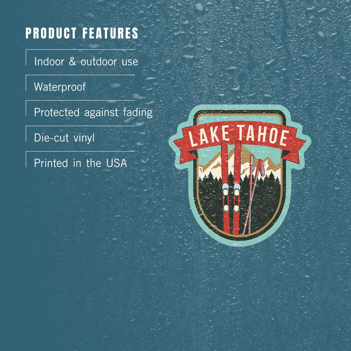 Lake Tahoe, California, Skis and Mountains, Contour, Vinyl Sticker