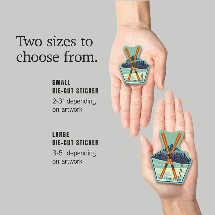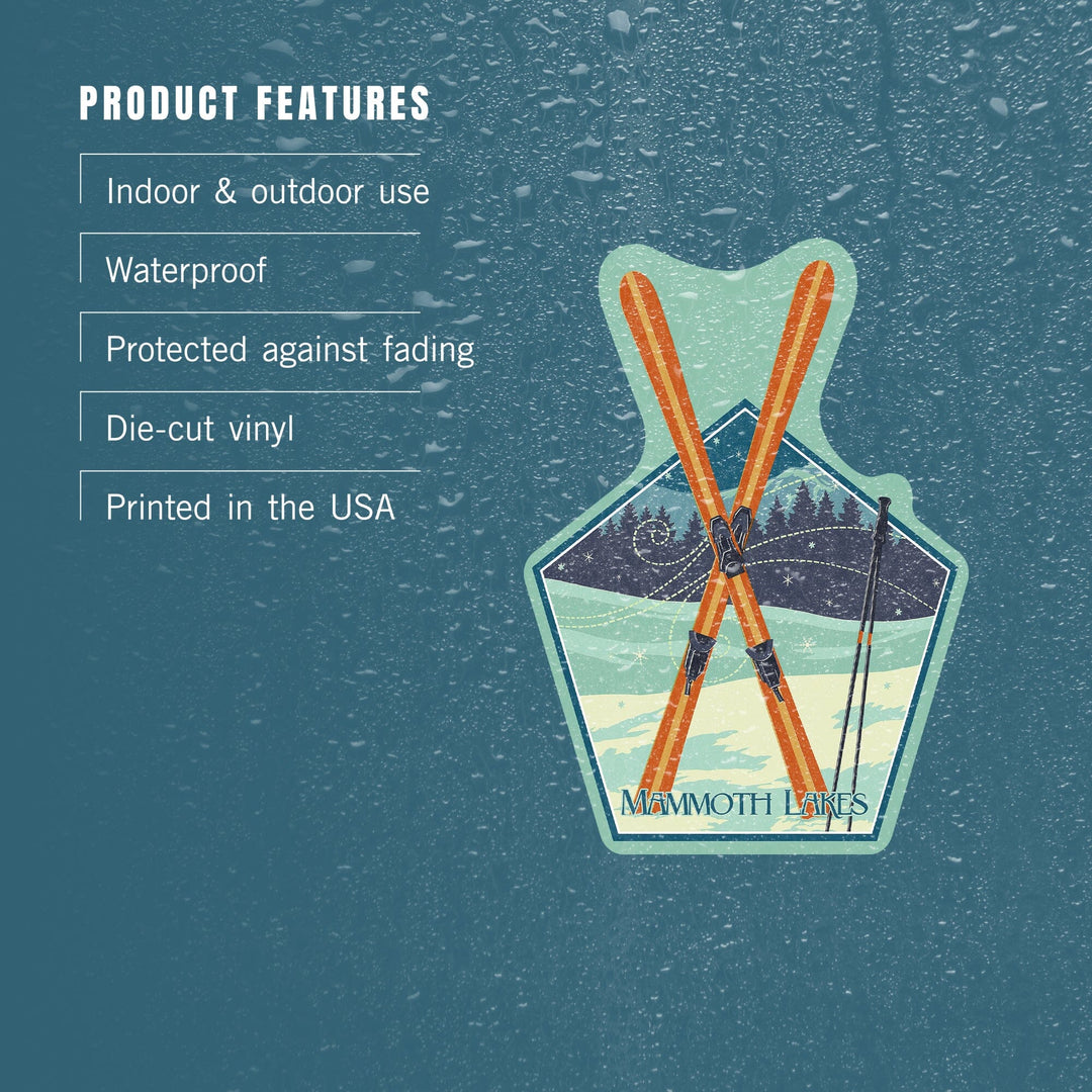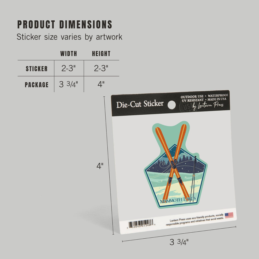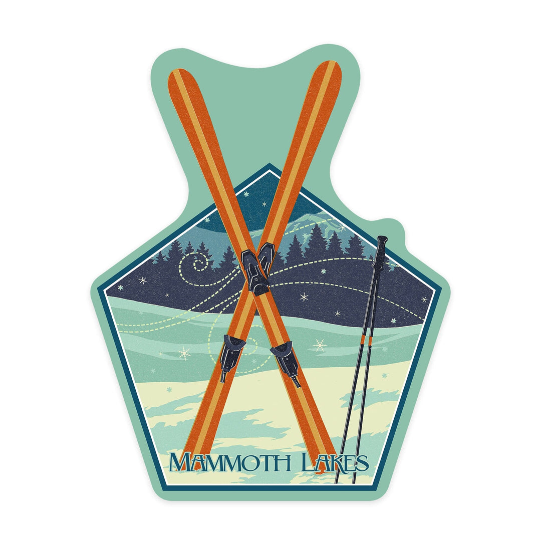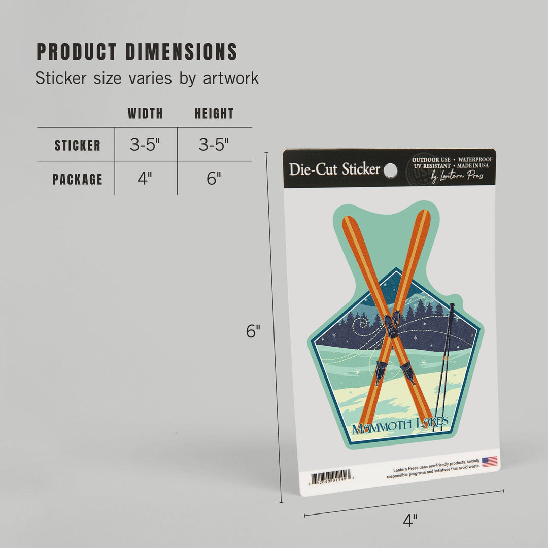 Mammoth Lakes, Crossed Skis, Letterpress, Contour, Vinyl Sticker Sticker Lantern Press