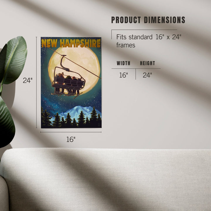 New Hampshire, Ski Lift and Full Moon, Art & Giclee Prints Art Lantern Press