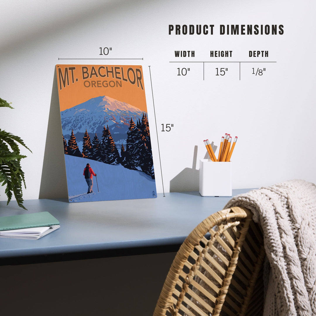 Oregon, Mt. Bachelor and Skier, Lantern Press Artwork, Wood Signs and Postcards Wood Lantern Press