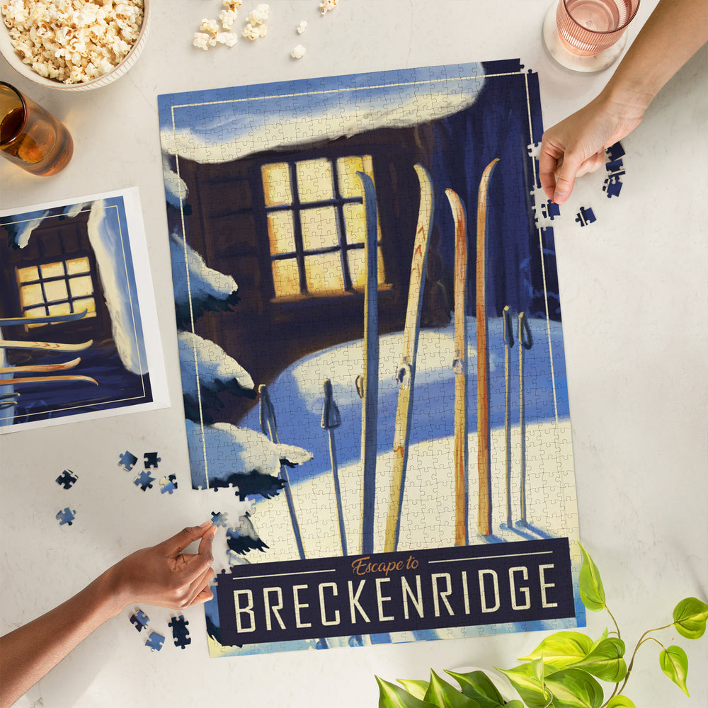 Breckenridge, Colorado, Skis Outside Cabin, Jigsaw Puzzle Puzzle Lantern Press