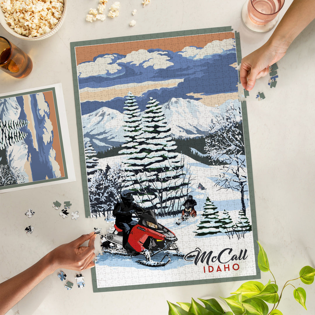 McCall, Idaho, Snowmobile Scene, Jigsaw Puzzle Puzzle Lantern Press