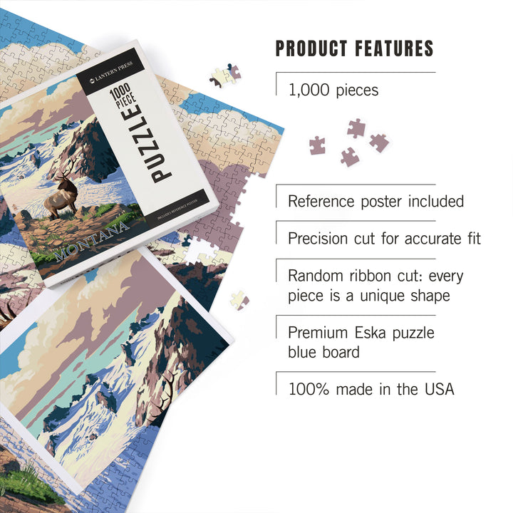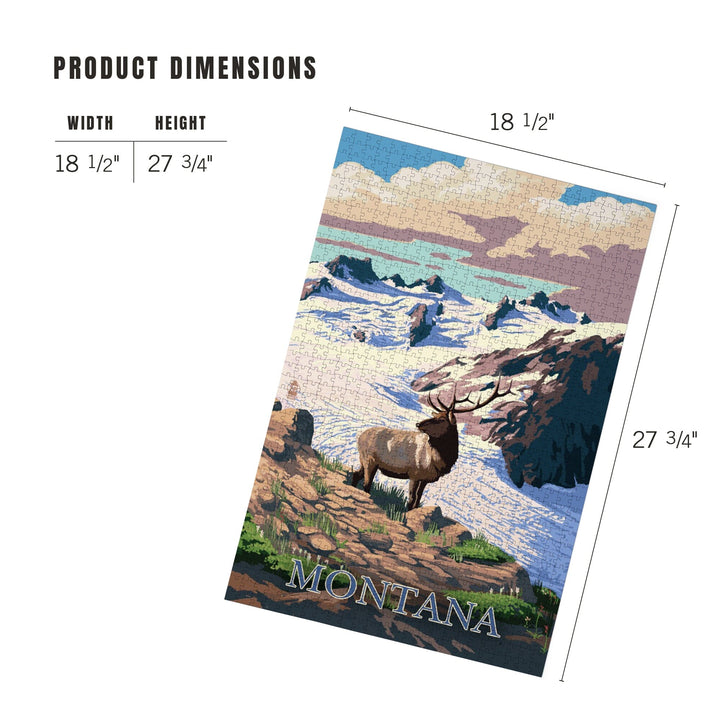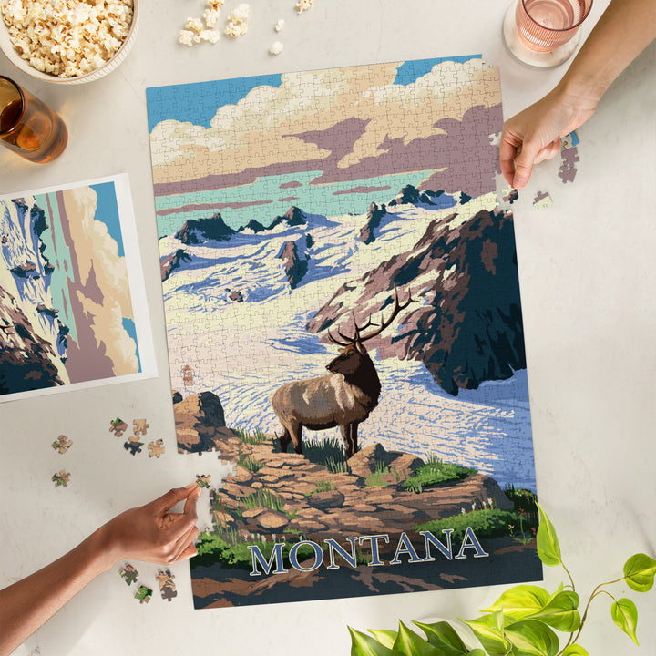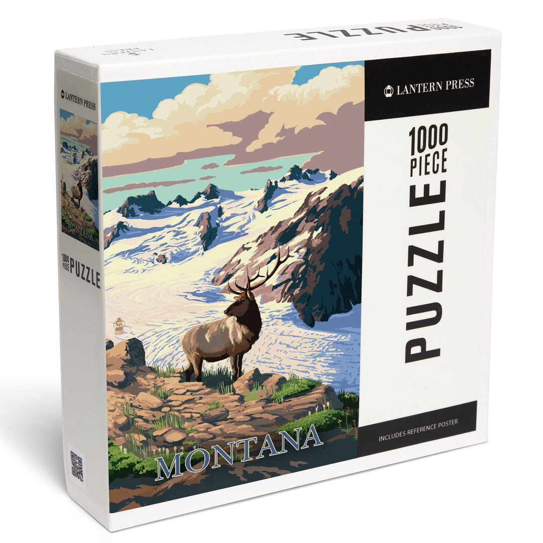 Montana, Elk and Snowy Mountain, Jigsaw Puzzle Puzzle Lantern Press