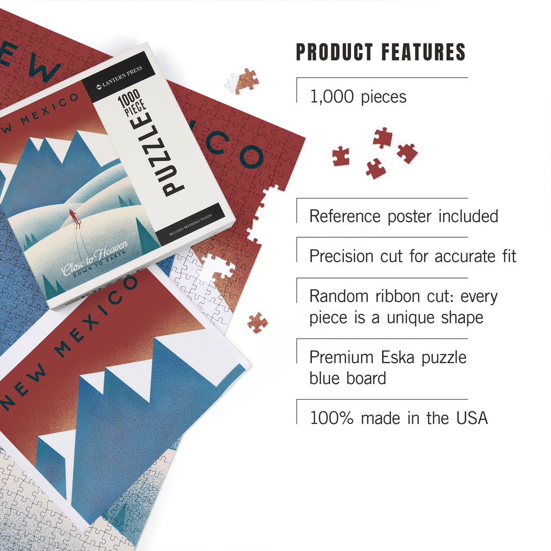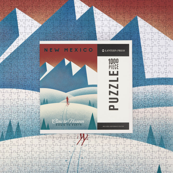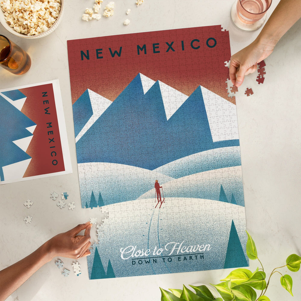 New Mexico, Skier In the Mountains, Litho, Jigsaw Puzzle Puzzle Lantern Press