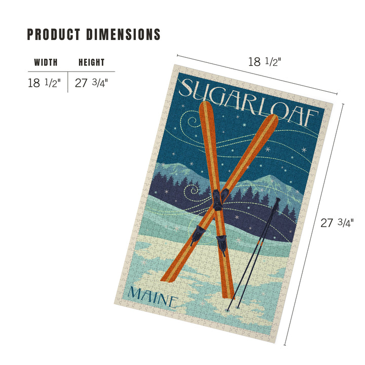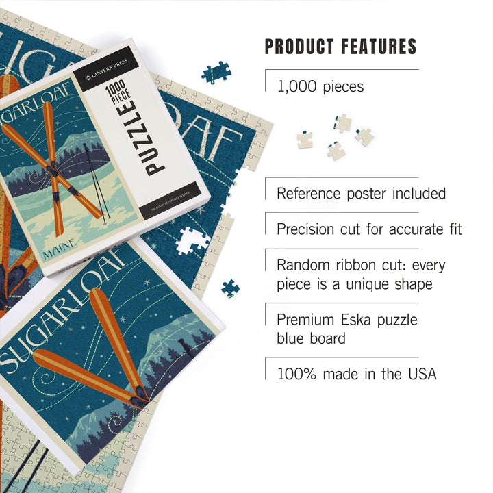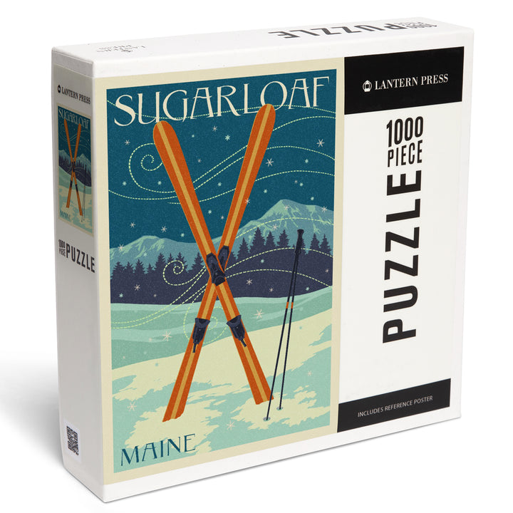 Sugarloaf, Maine, Crossed Skis, Letterpress, Jigsaw Puzzle Puzzle Lantern Press