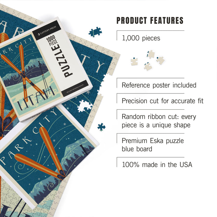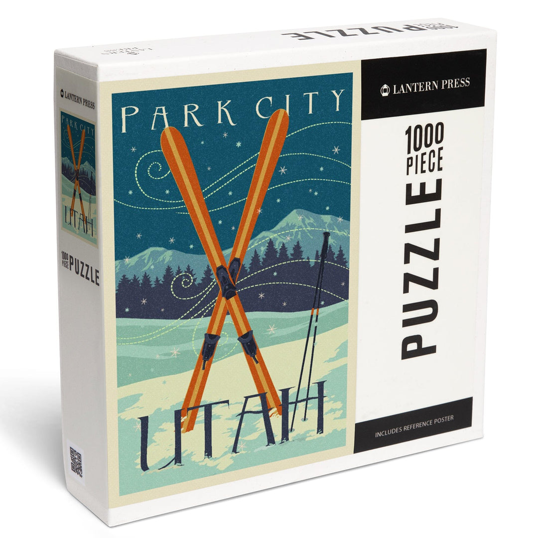 Utah, Crossed Skis, Letterpress, Jigsaw Puzzle Puzzle Lantern Press