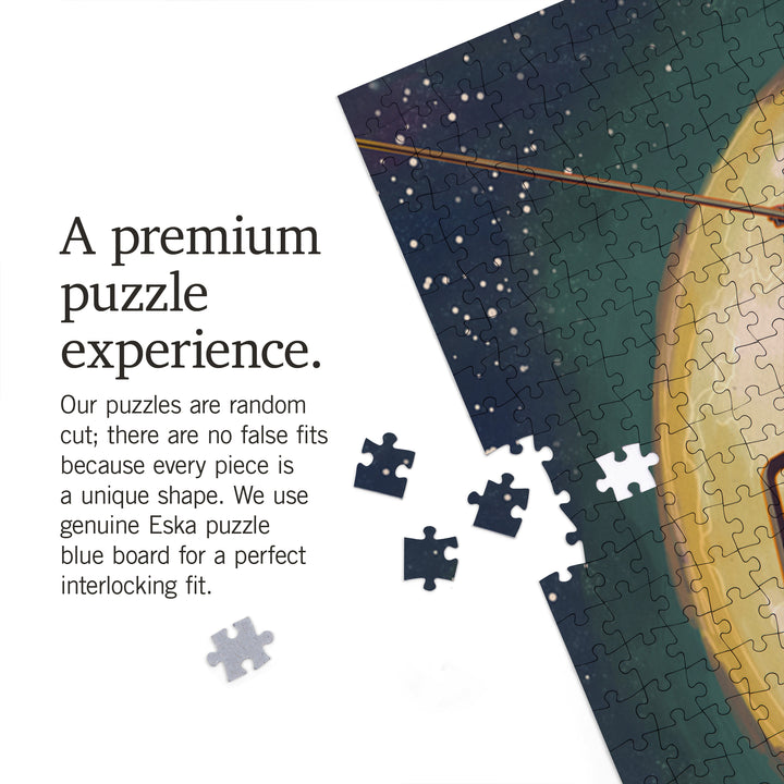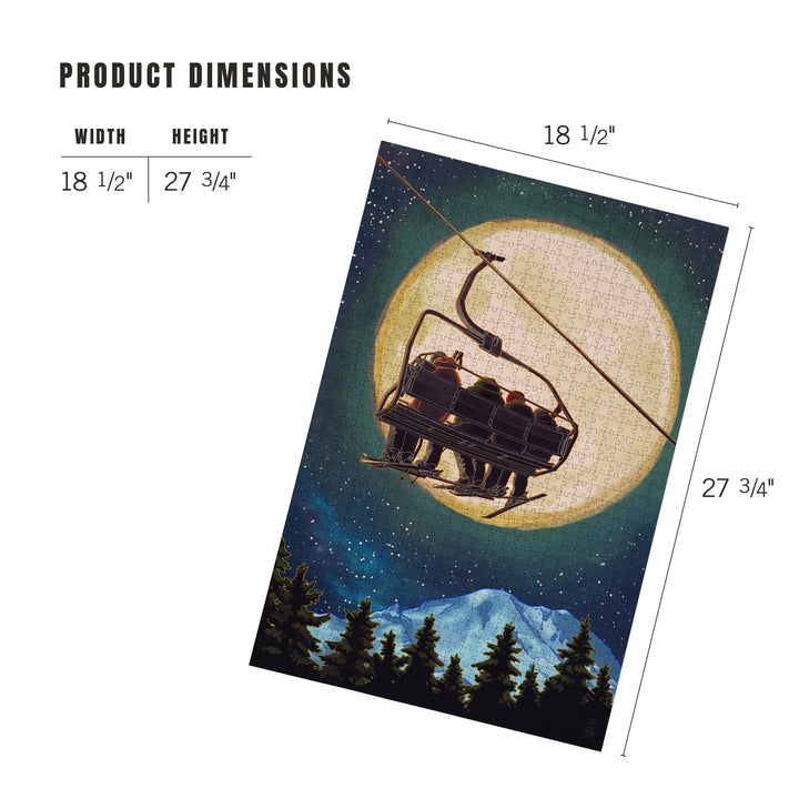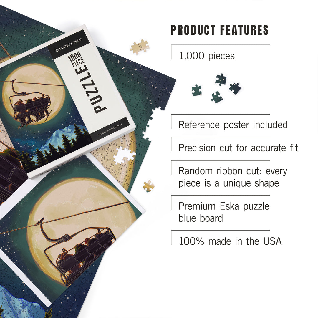 Ski Lift and Full Moon, Jigsaw Puzzle Puzzle Lantern Press