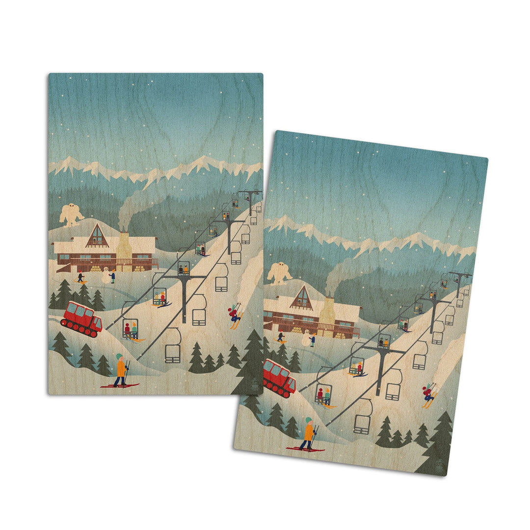 Retro Mountain Town, Lantern Press Artwork, Wood Signs and Postcards Wood Lantern Press