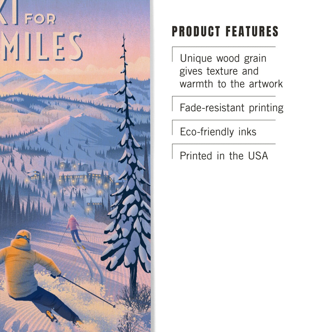 Ski for Miles, Skiing, Wood Signs and Postcards Wood Lantern Press
