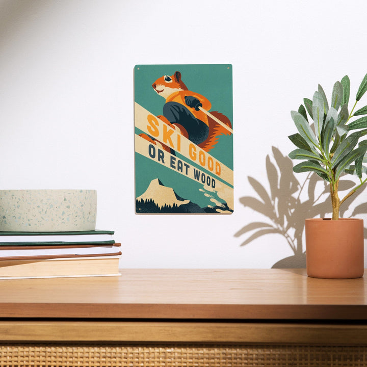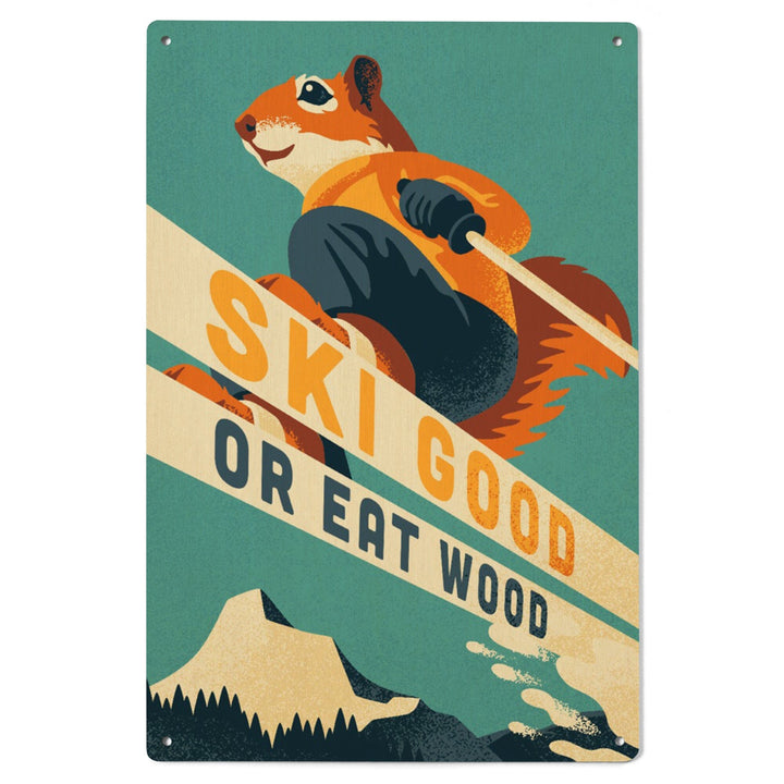 Ski Good or Eat Wood, Animal Activities Series, Ski Squirrel, Wood Signs and Postcards Wood Lantern Press