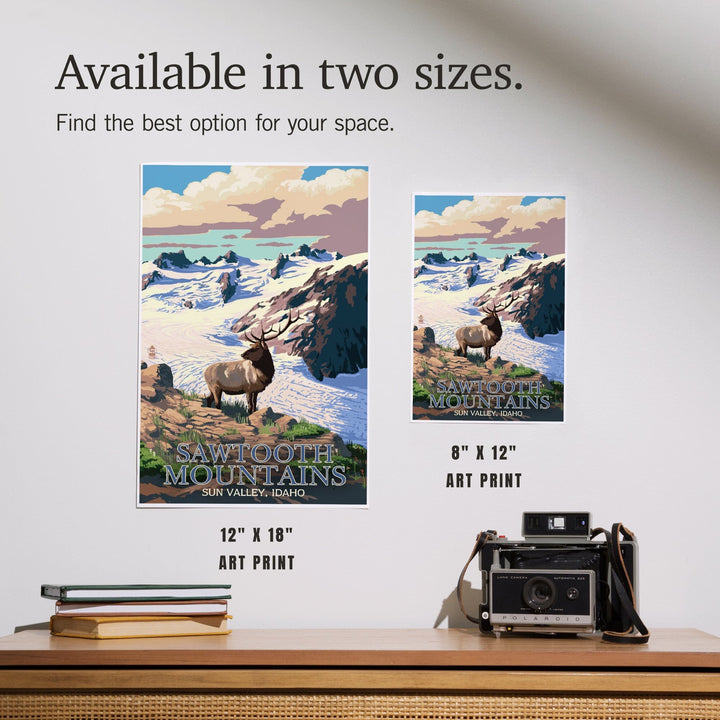 Sun Valley, Idaho, Sawtooth Mountain, Elk and Snowy Mountain, Art & Giclee Prints Art Lantern Press
