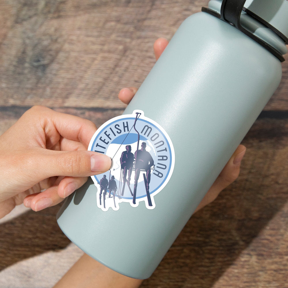 Whitefish, Montana, Skiers on Lift, Contour, Vinyl Sticker