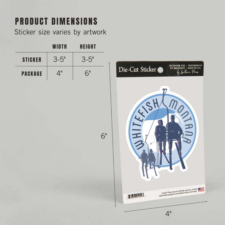 Whitefish, Montana, Skiers on Lift, Contour, Vinyl Sticker Sticker Lantern Press