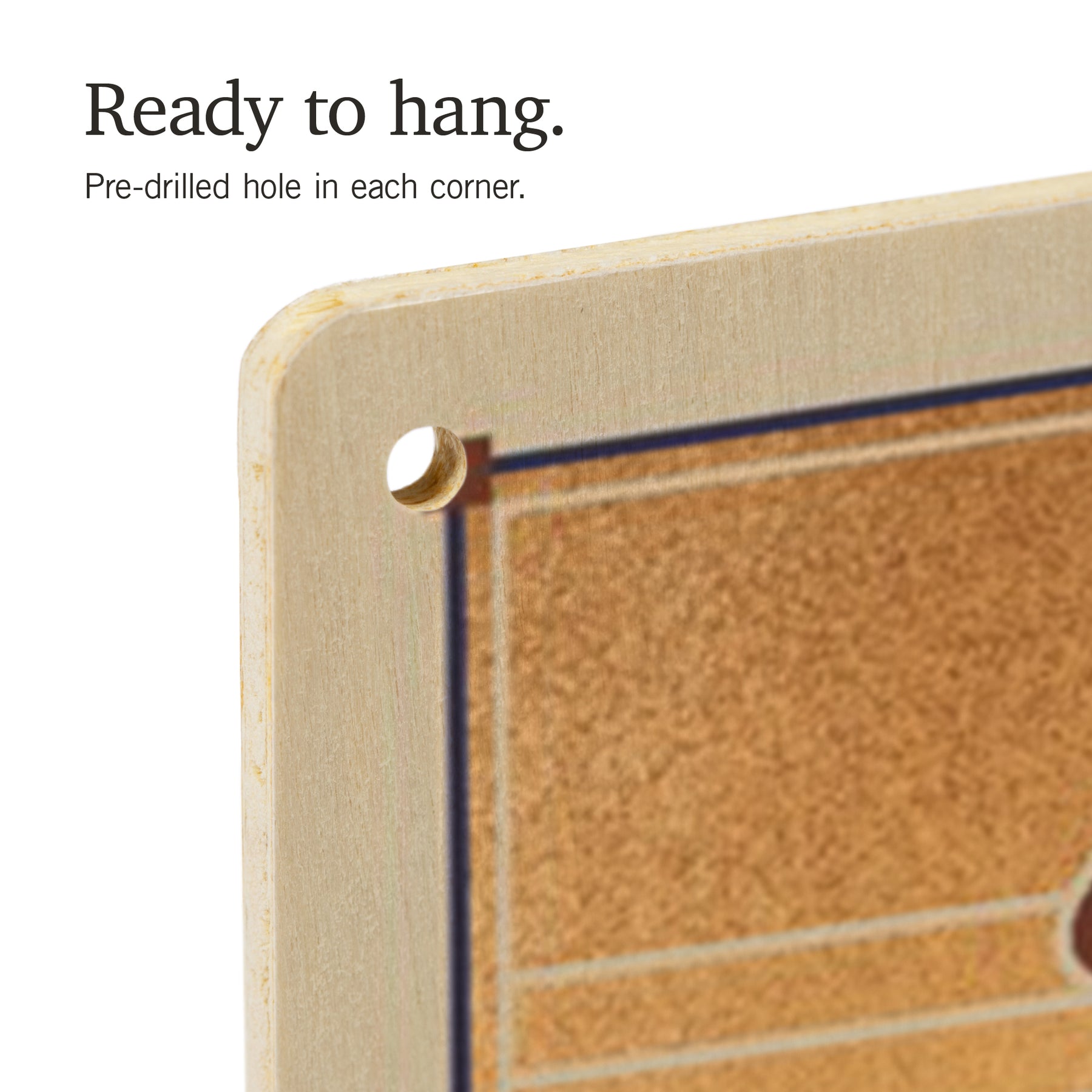 • Hole in each corner, ready to hang