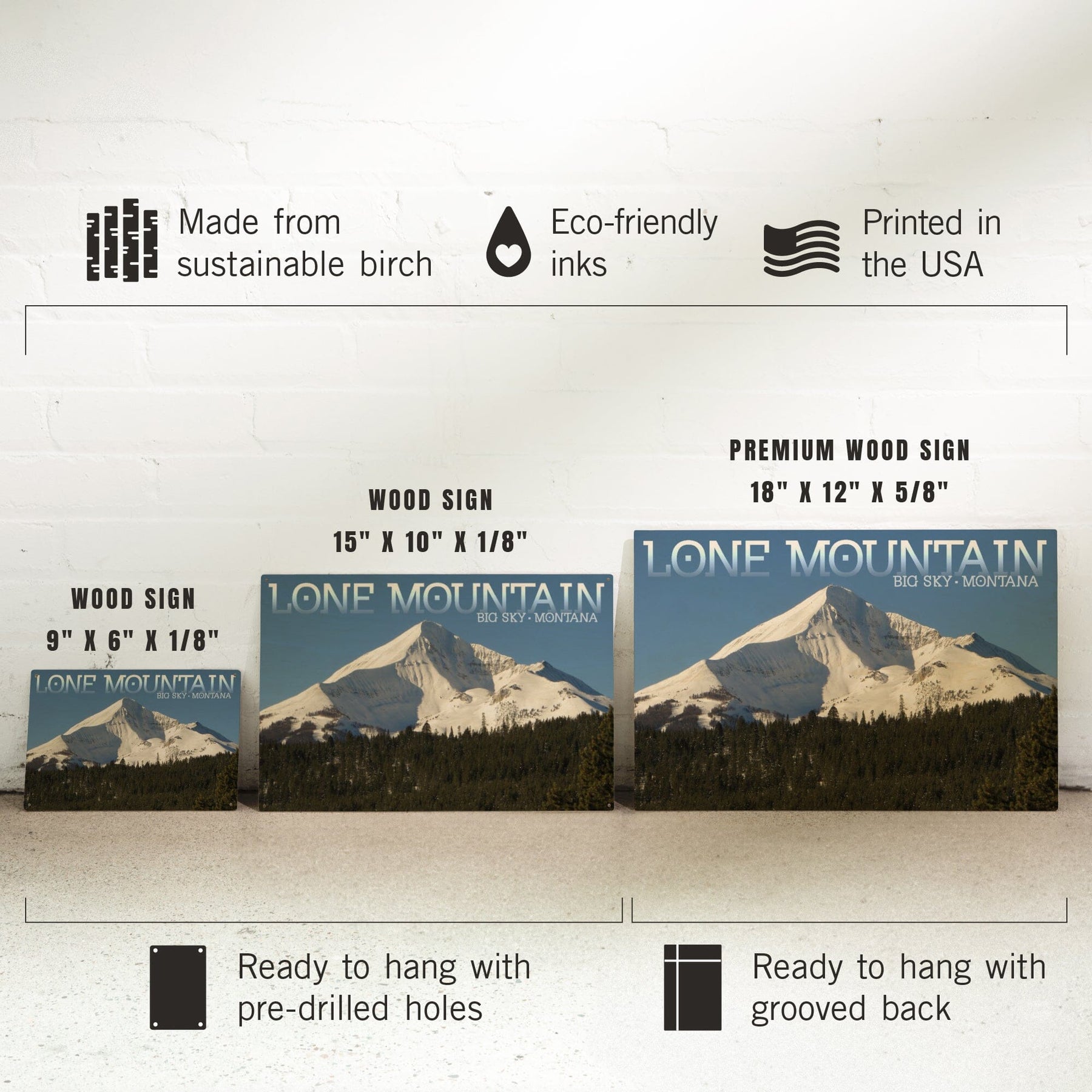 Big Sky, Montana, Lone Mountain, Lantern Press Photography, Wood Signs and Postcards - Lantern Press