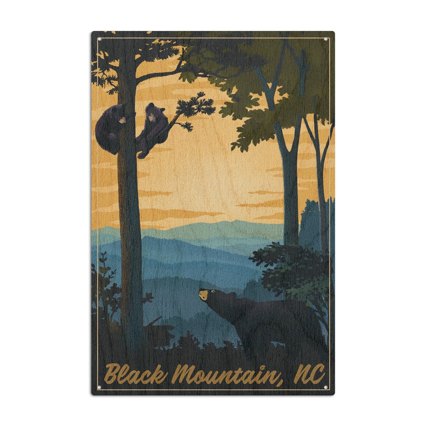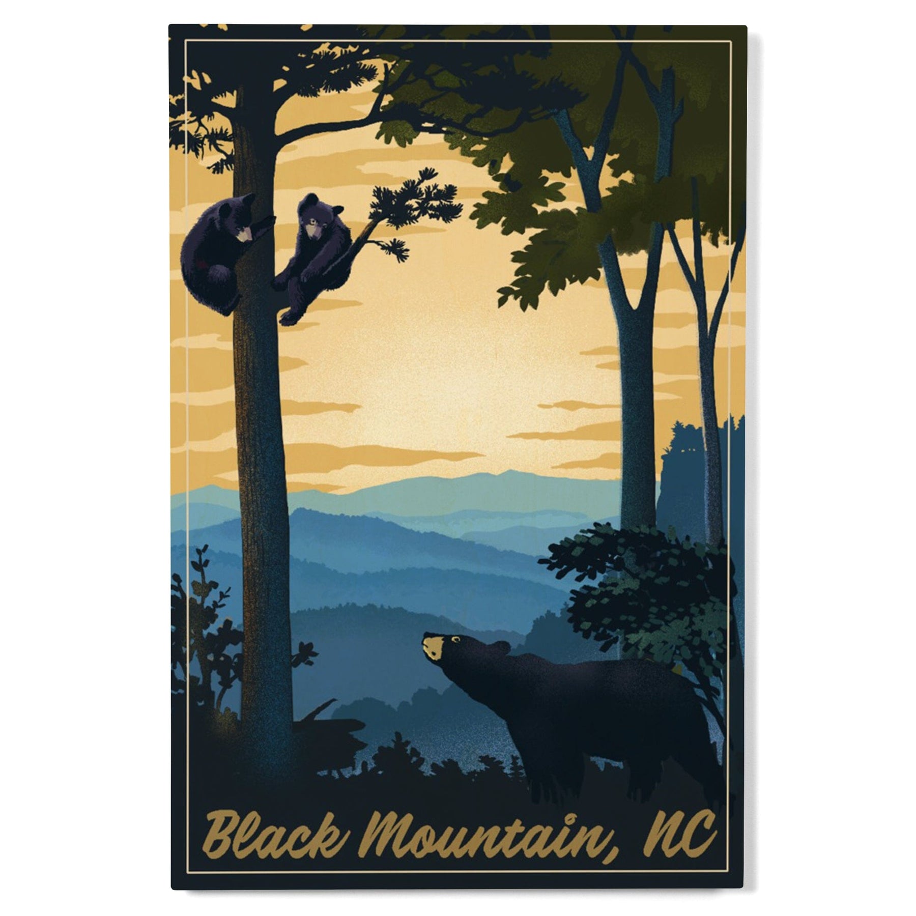 Black Mountain, North Carolina, Black Bears, Lithograph, Lantern Press Artwork, Wood Signs and Postcards