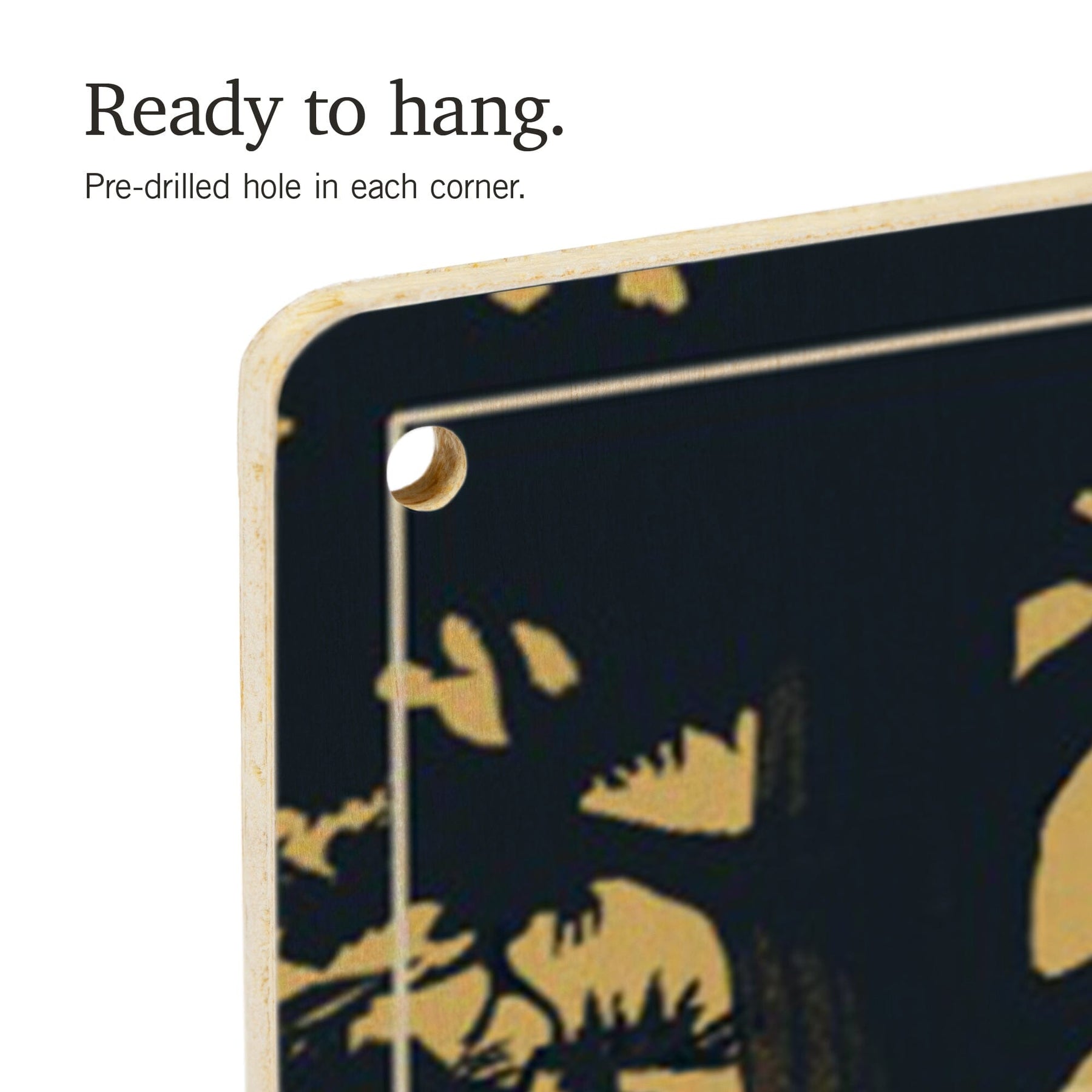• Hole in each corner, ready to hang