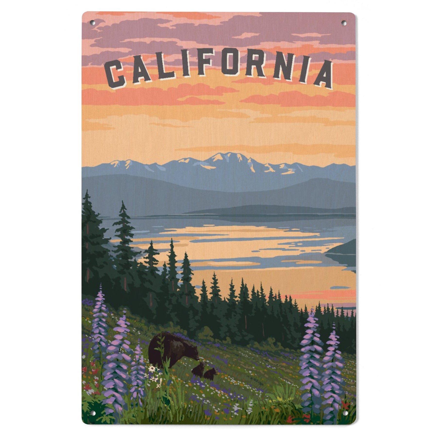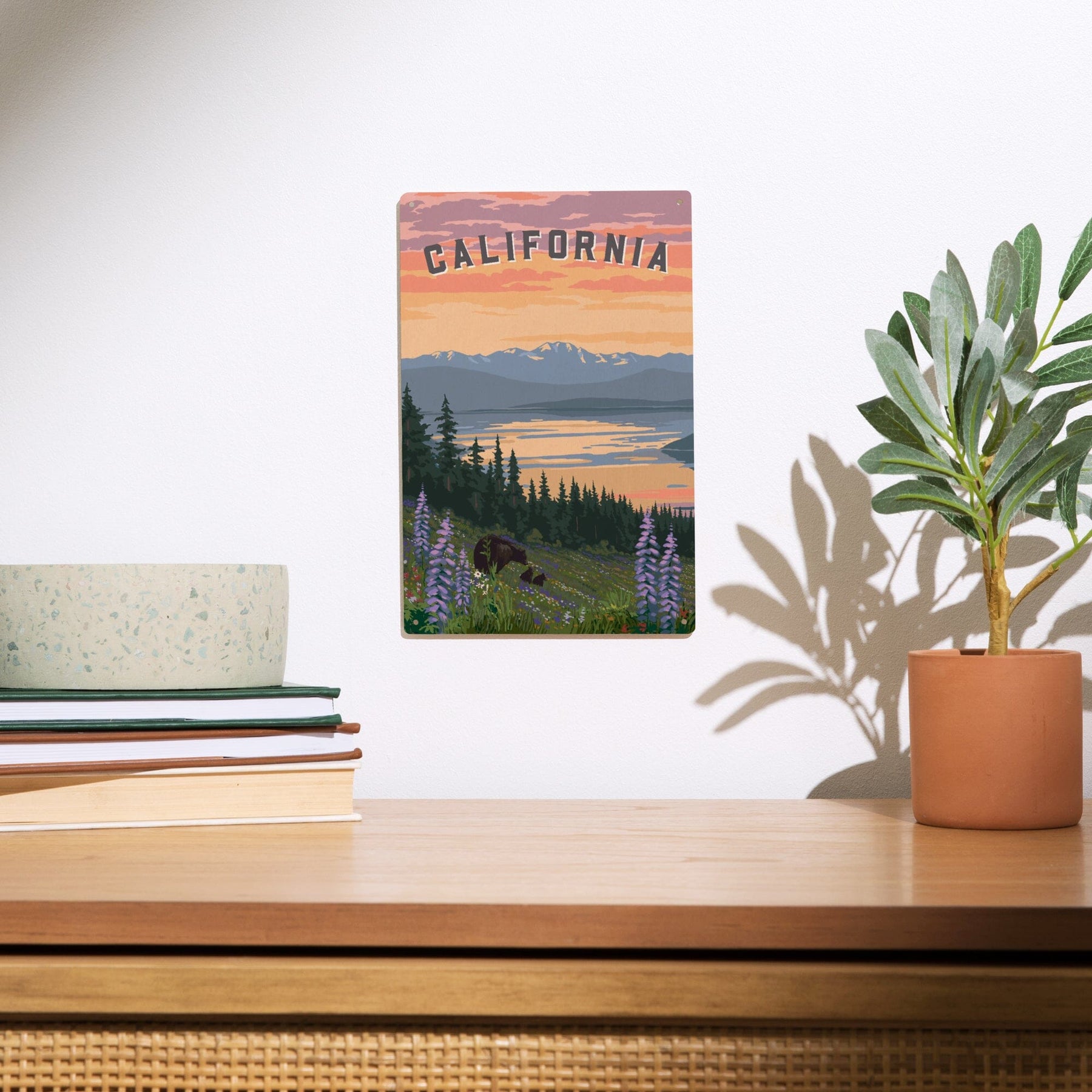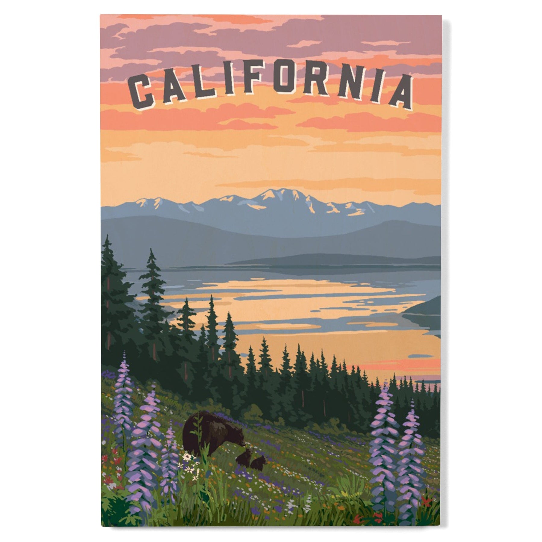 California Bear and Spring Flowers, Wood Signs and Postcards Wood Lantern Press