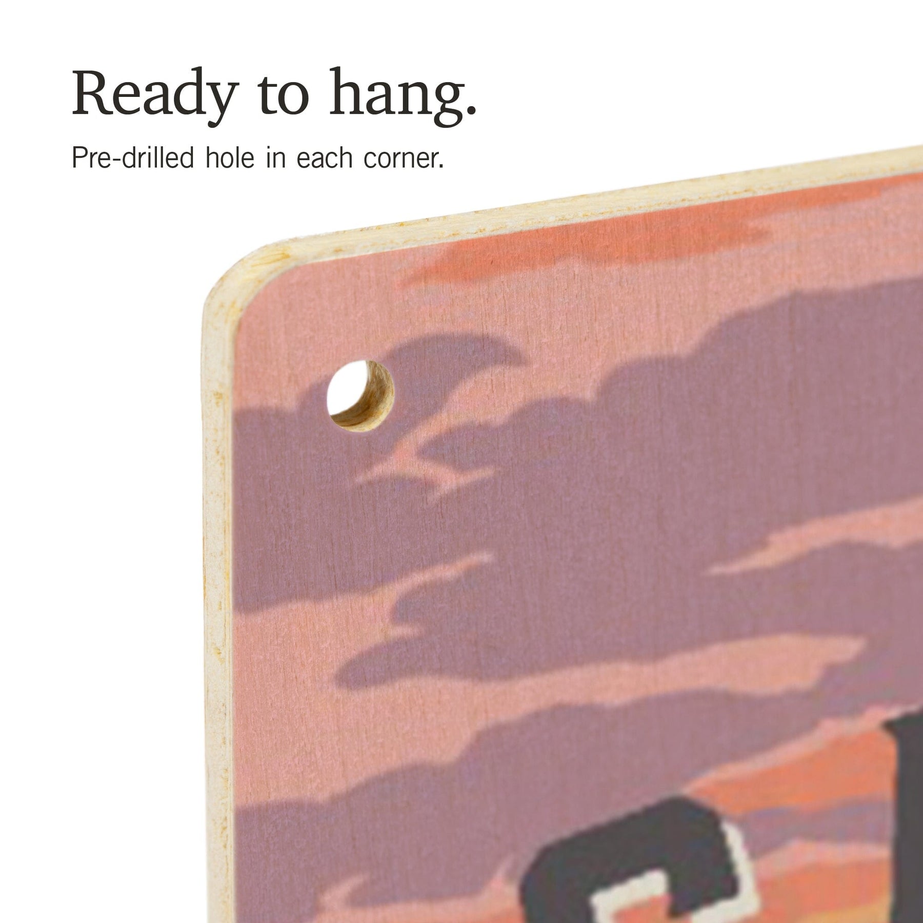 • Hole in each corner, ready to hang