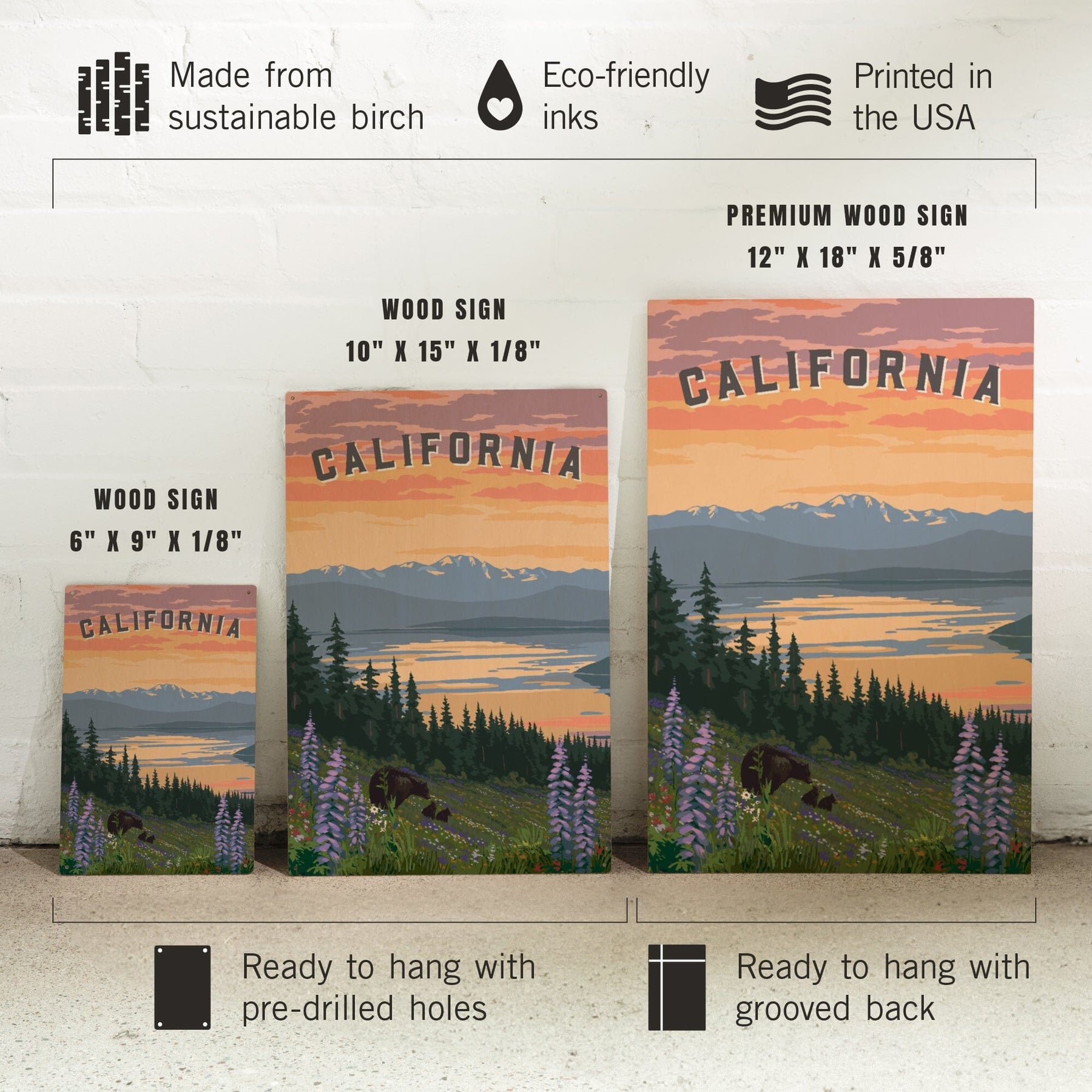 California Bear and Spring Flowers, Wood Signs and Postcards