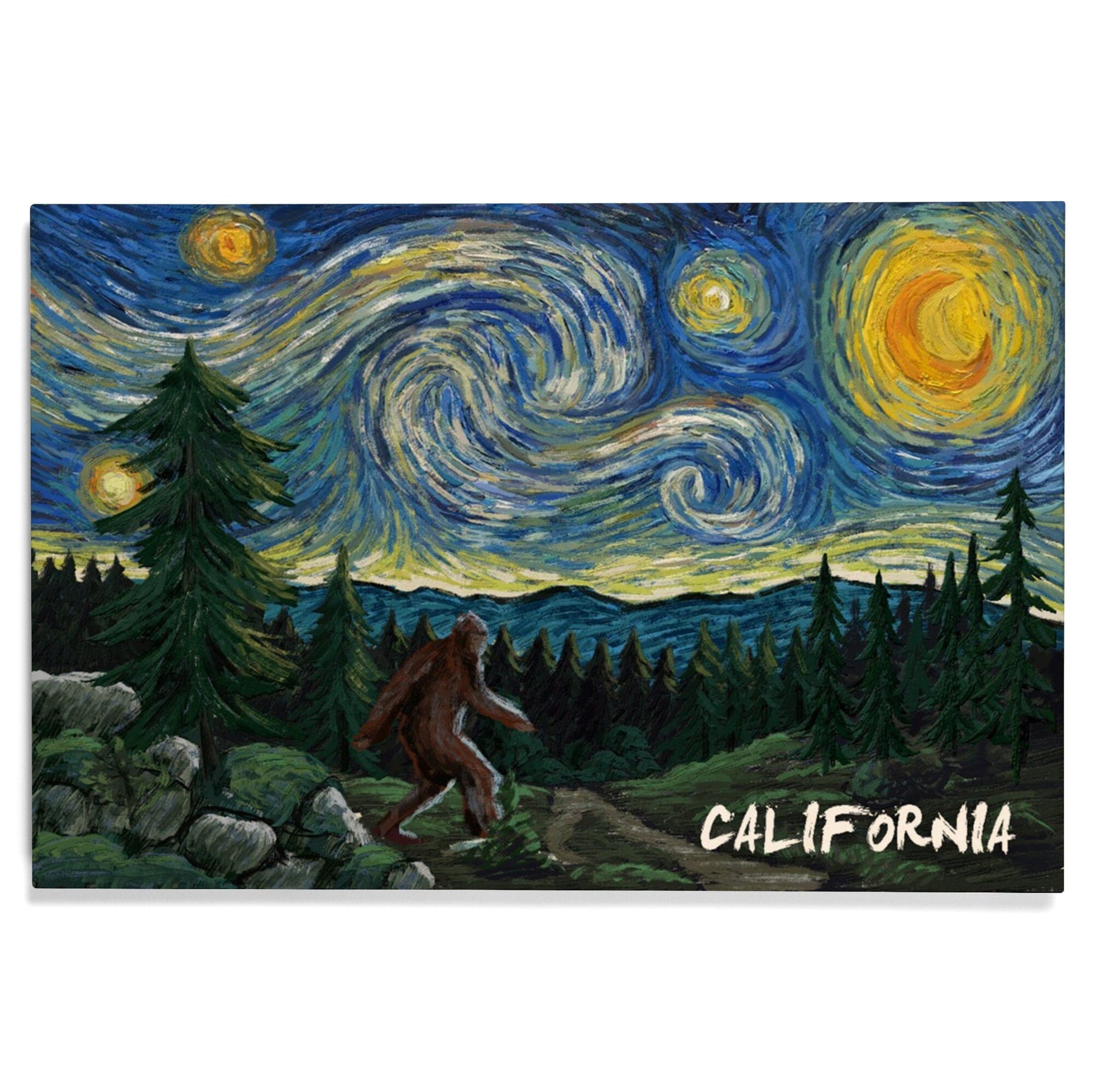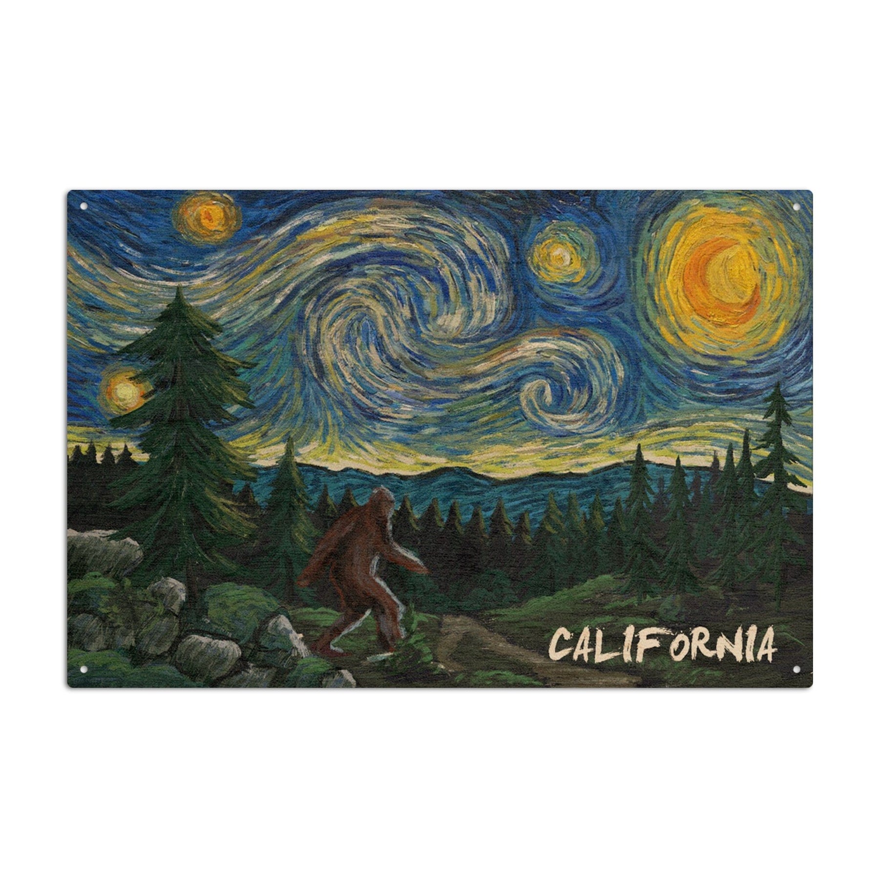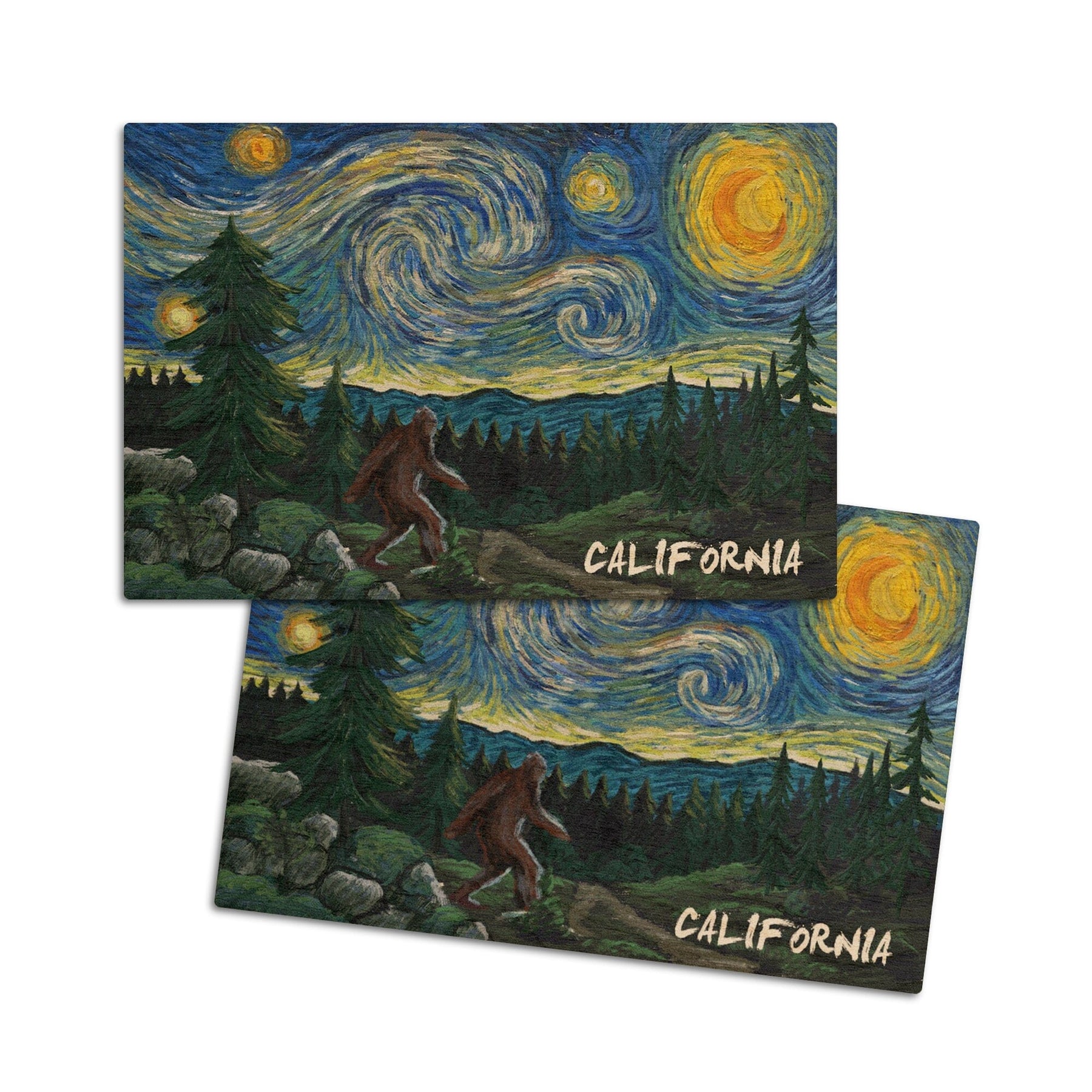 California, Bigfoot, Starry Night, Lantern Press Artwork, Wood Signs and Postcards