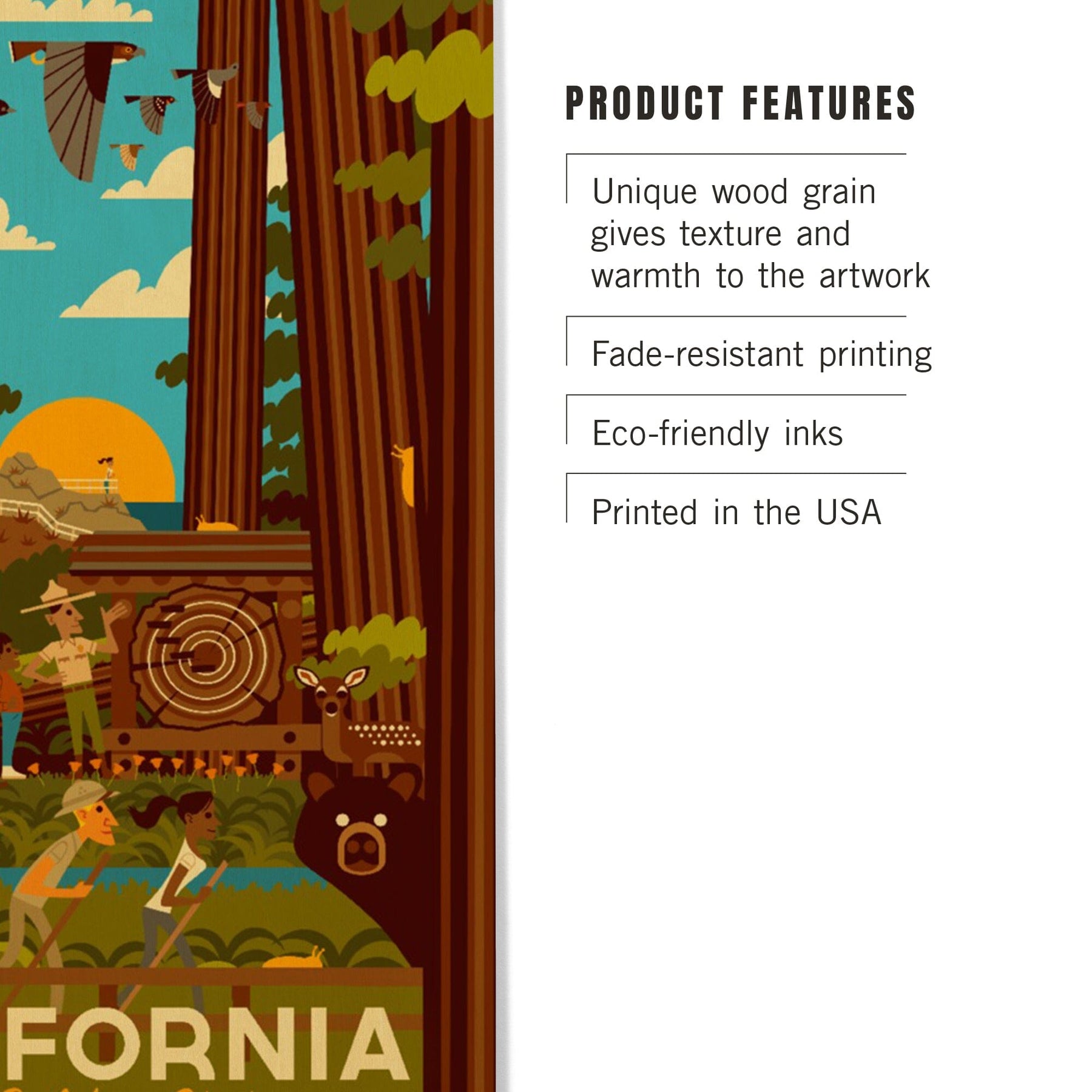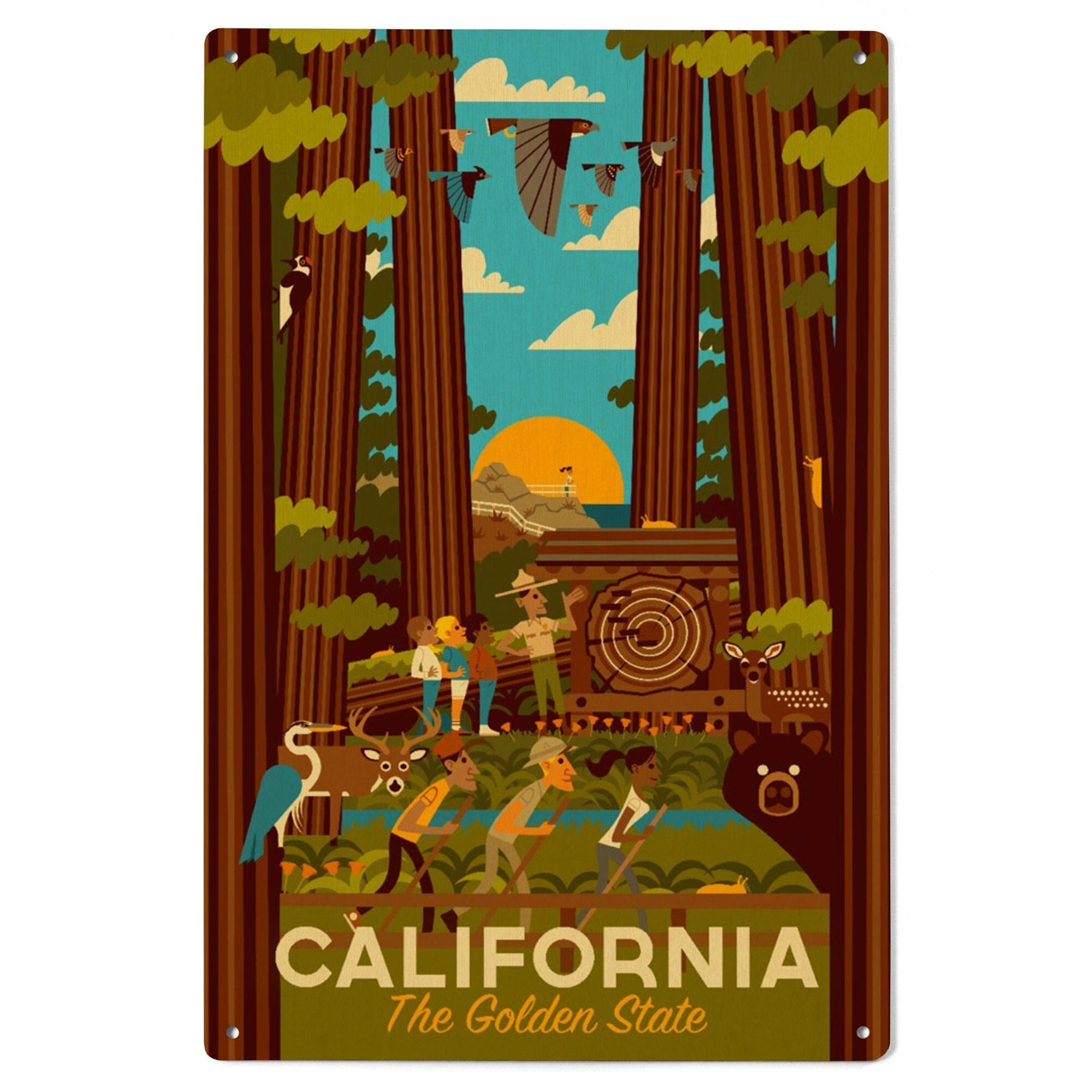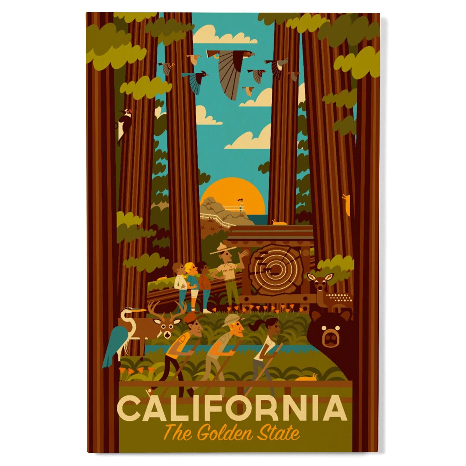 California, Geometric, The Golden State, Wood Signs and Postcards Wood Lantern Press