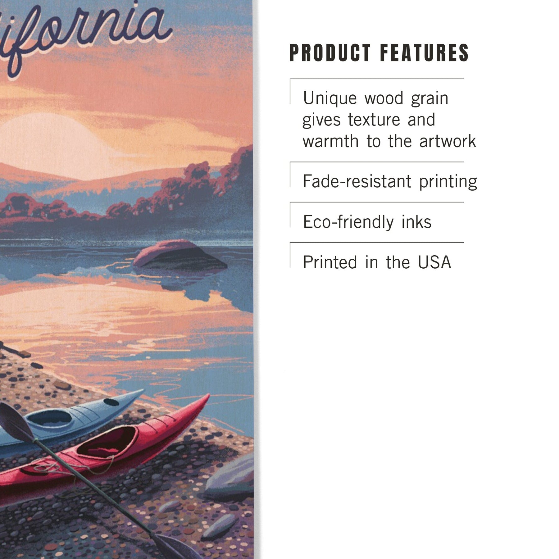 California, Glassy Sunrise, Kayak, Wood Signs and Postcards
