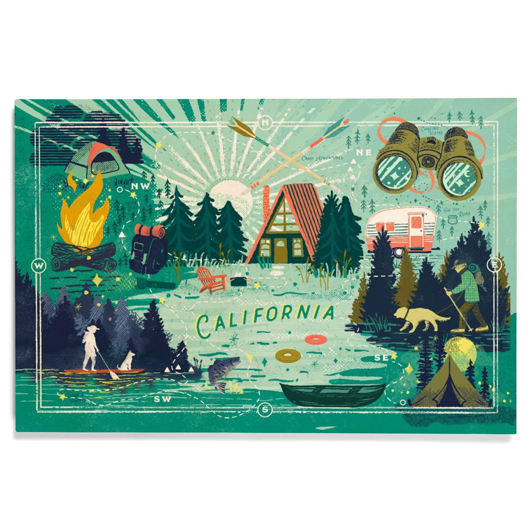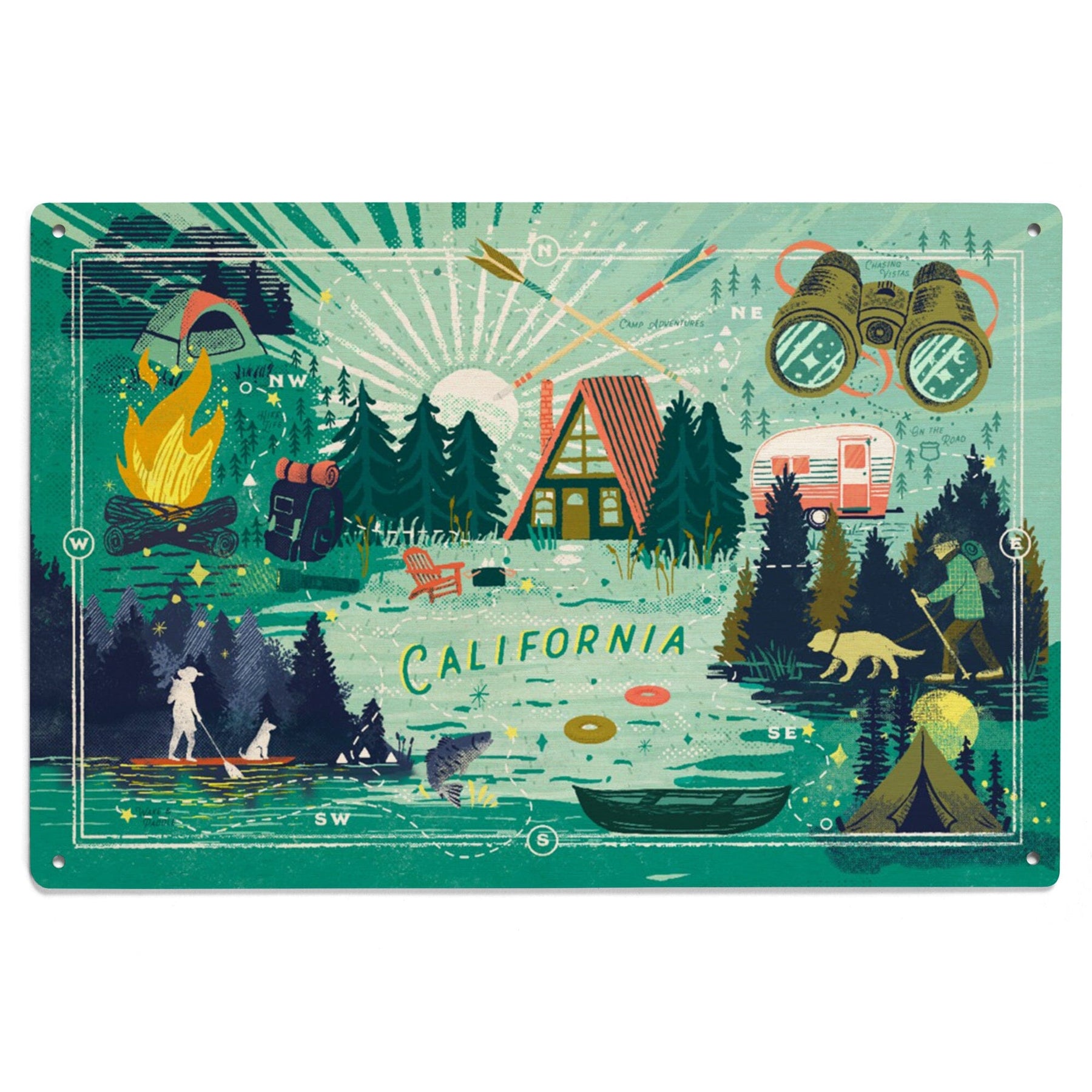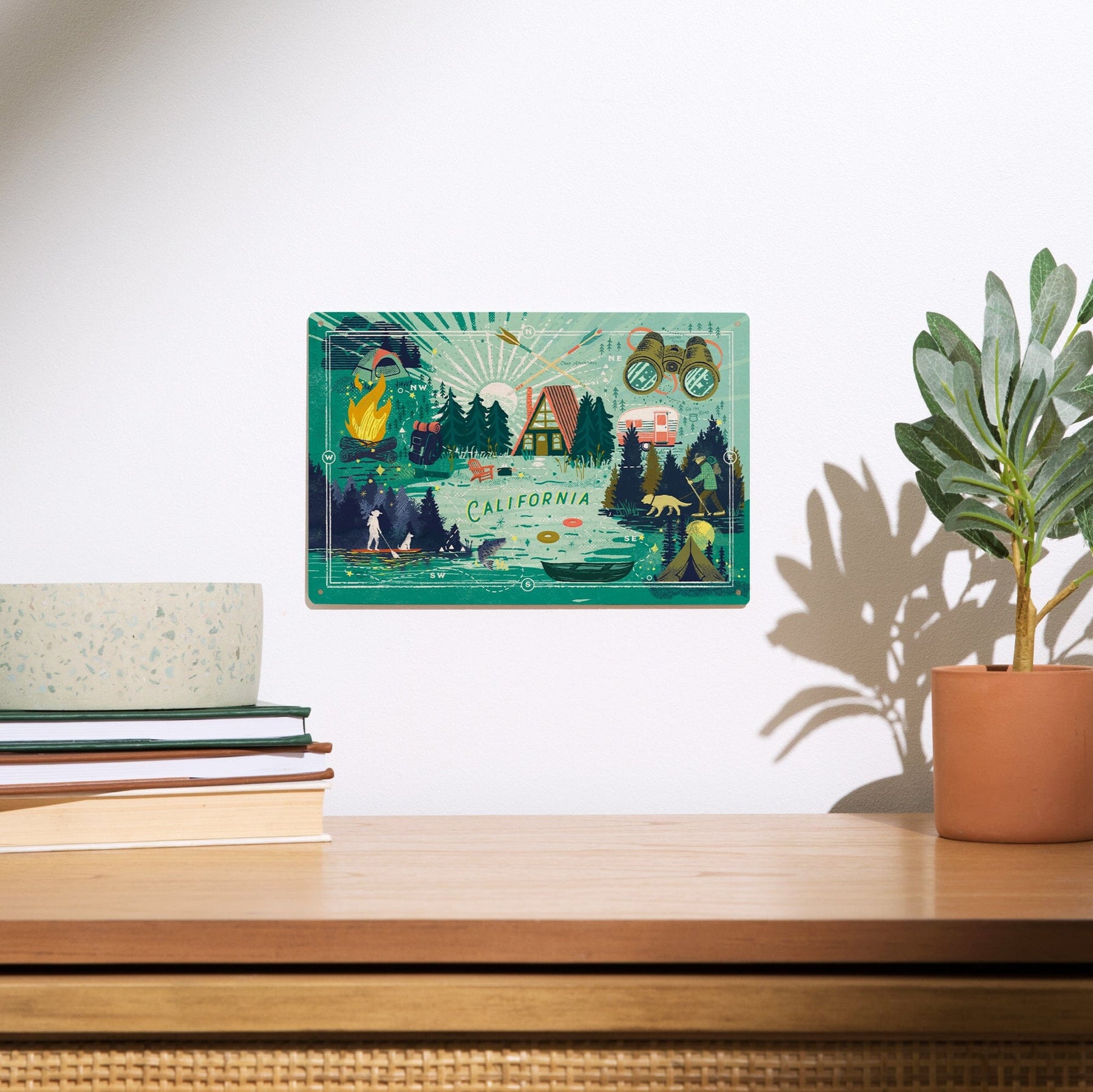 California, Lake Life Series, Collage, Landscape with Trees, Wood Signs and Postcards Wood Lantern Press